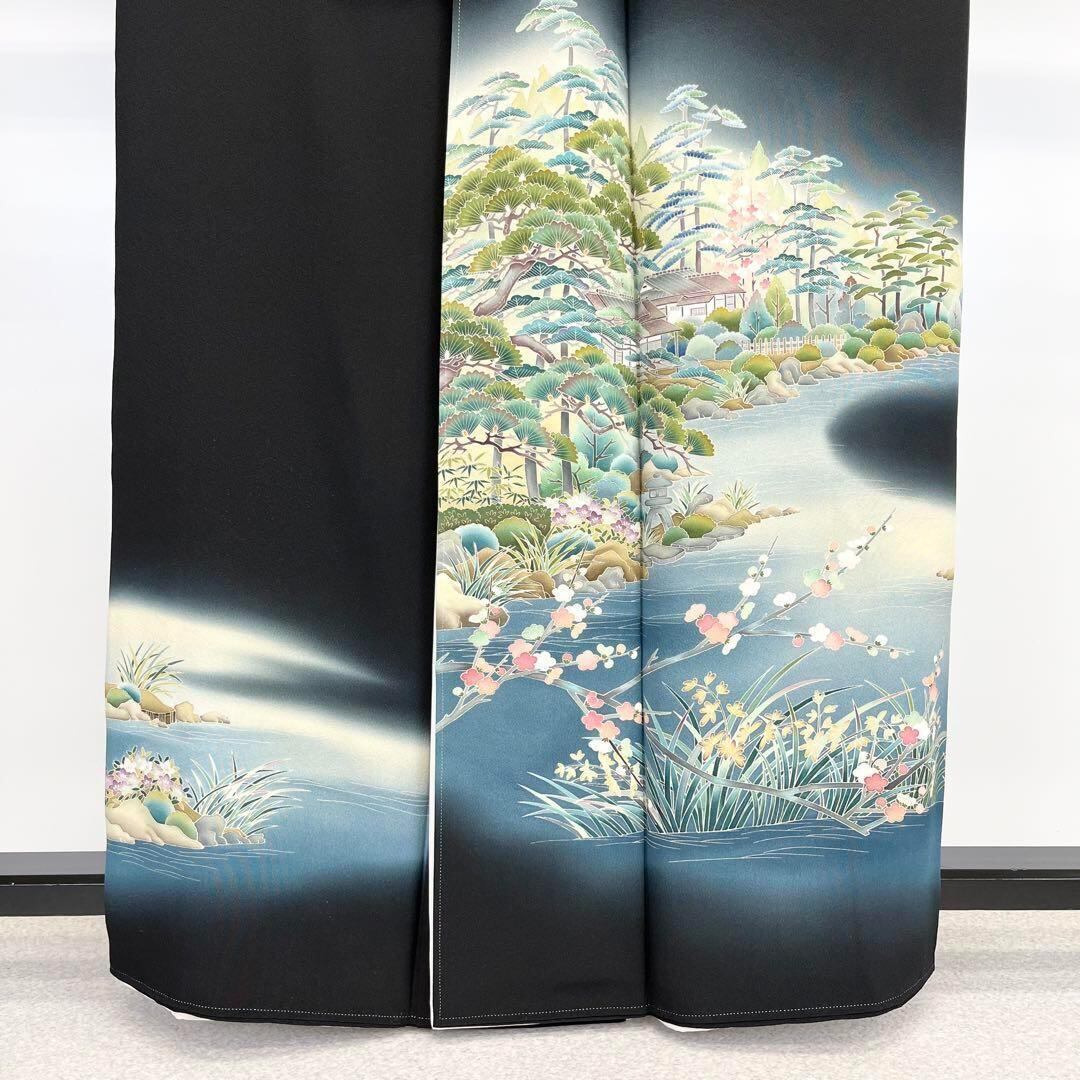 黒留袖 作家物 友禅 水辺の松並木 梅 風景 ガード加工 K-3728