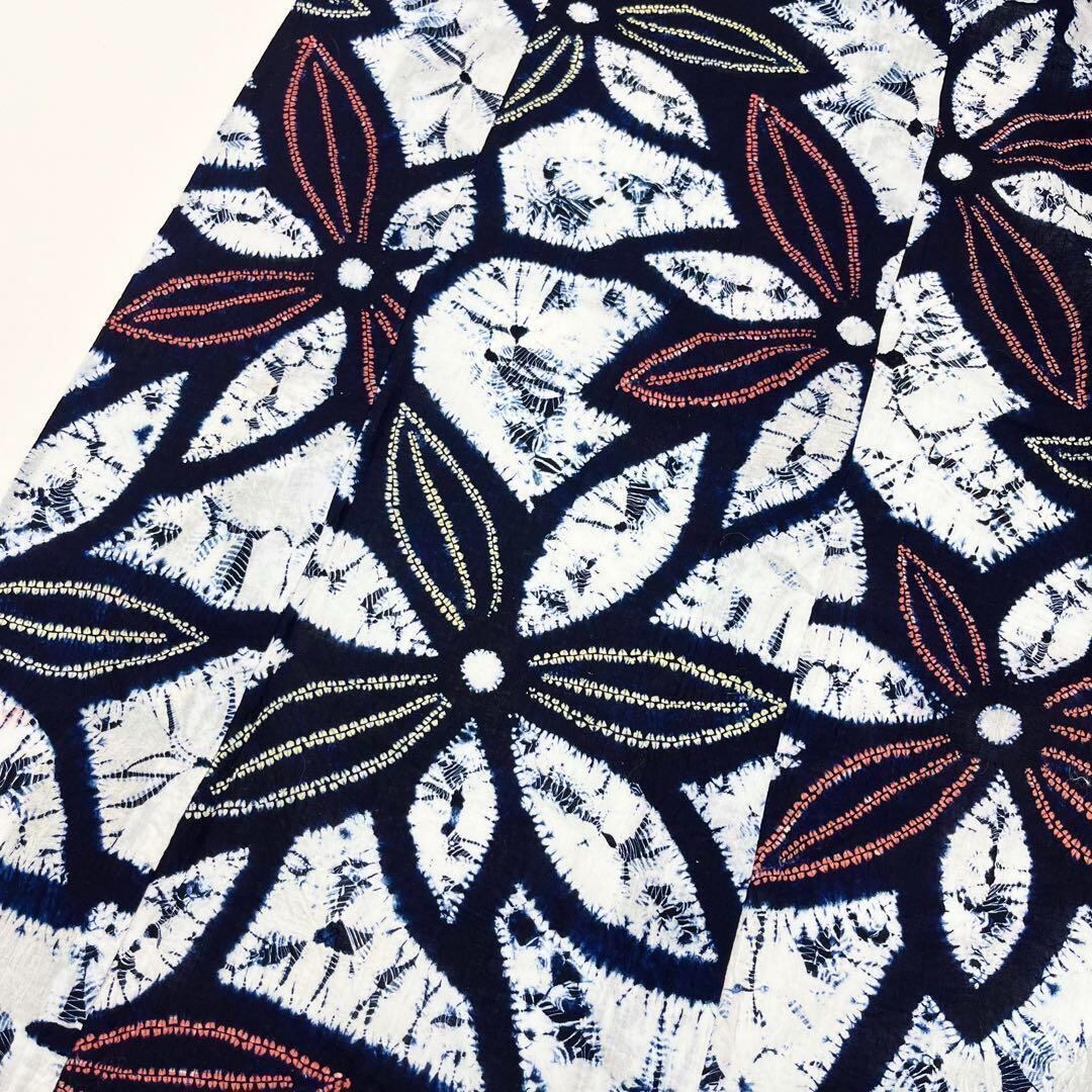 浴衣 有松鳴海本絞り 花模様 濃藍色 K-3725