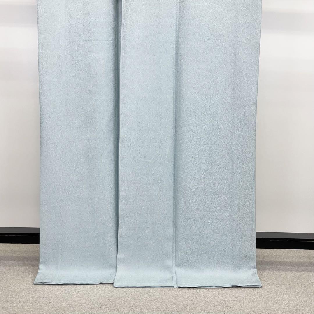 瓶覗色の大変上品な薄水色のお色味の縮緬の素敵なお品でございます。