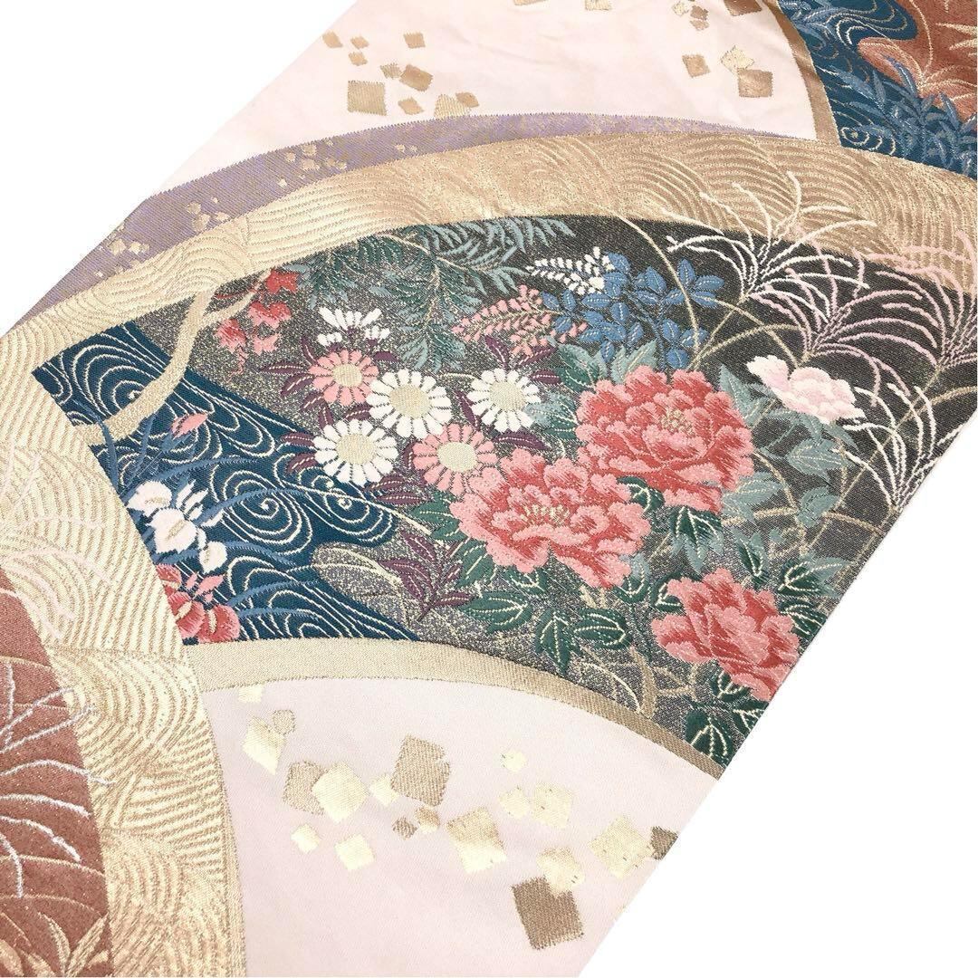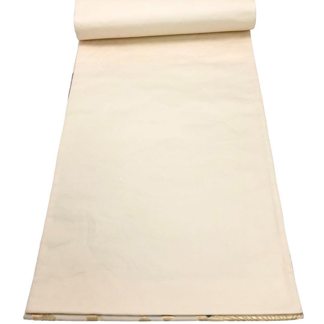 袋帯 美しい牡丹の菊の花柄模様 流水 金糸 生成色 O-3701 着物 きもの kimono 和服 和装 中古 リサイクル着物 【送料無料】