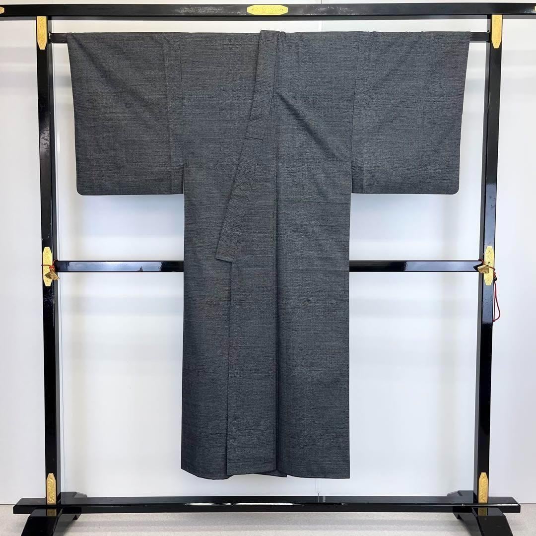 男着物 アンサンブル 塩沢紬 長襦袢 亀甲 証紙付 黒色 M-1055 着物 きもの kimono 和服 和装 中古 リサイクル着物 【送料無料】