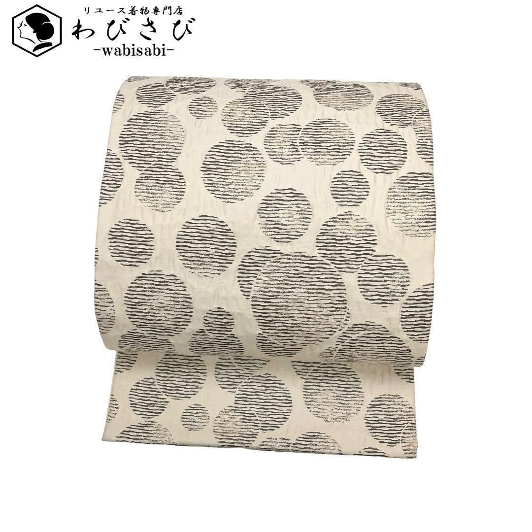 薄生成色の上品なお色味、紅花染の横縞水玉模様がデザインされた素敵な柄裄のお品でございます。
