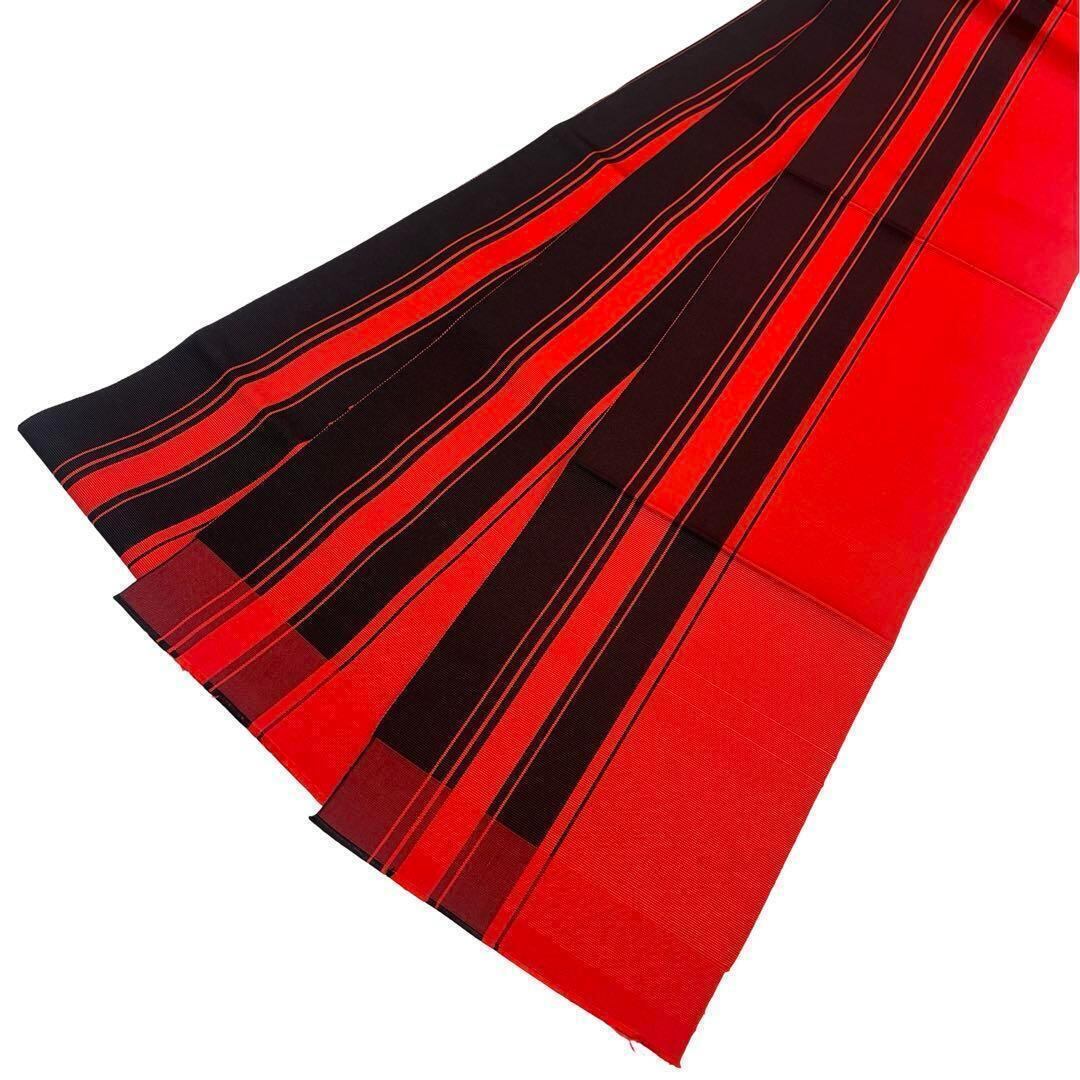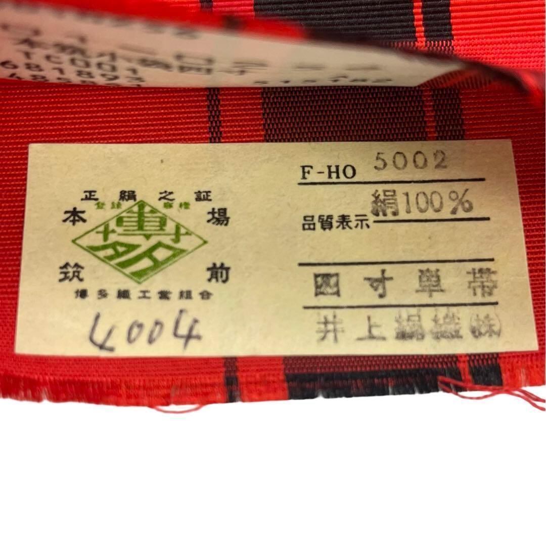 夏帯 半幅帯 本場筑前博多織 縦縞模様 証紙付 赤色 O-3739
