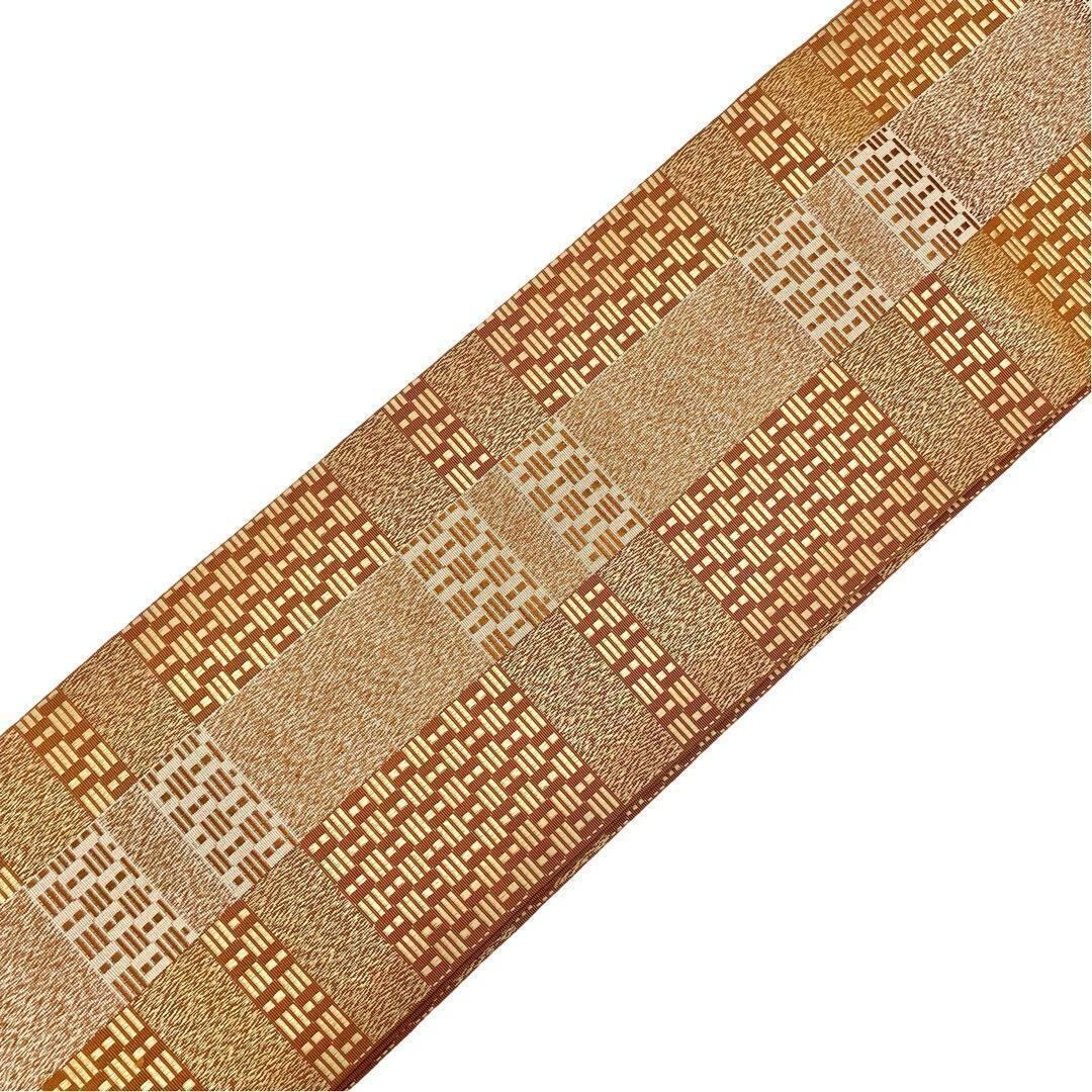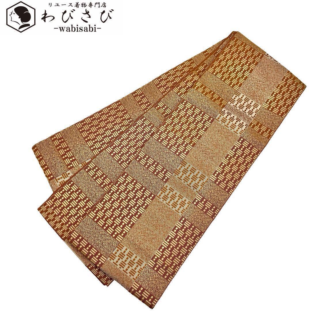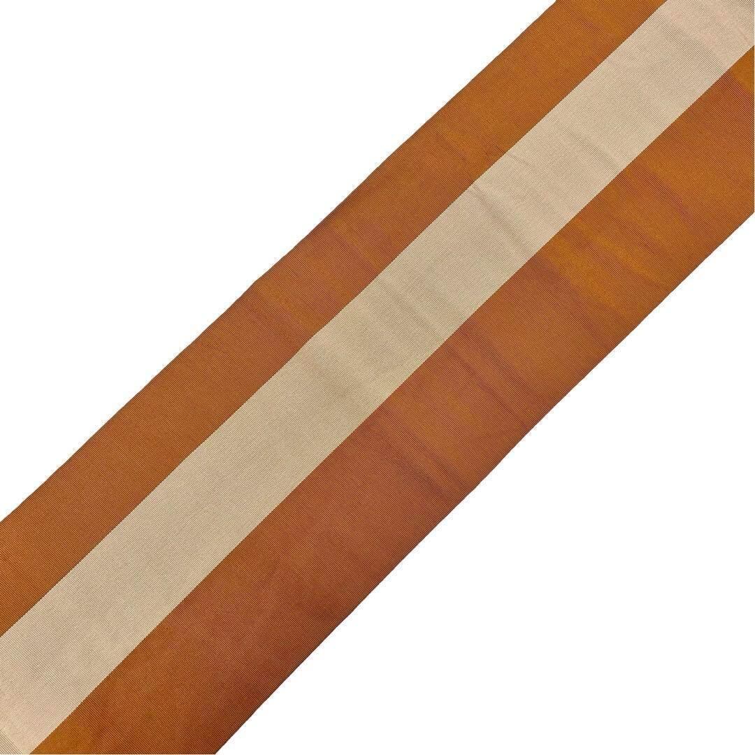 半幅帯 本場筑前博多織 リバーシブル 美しい織模様 茶色 証紙付 O-3737