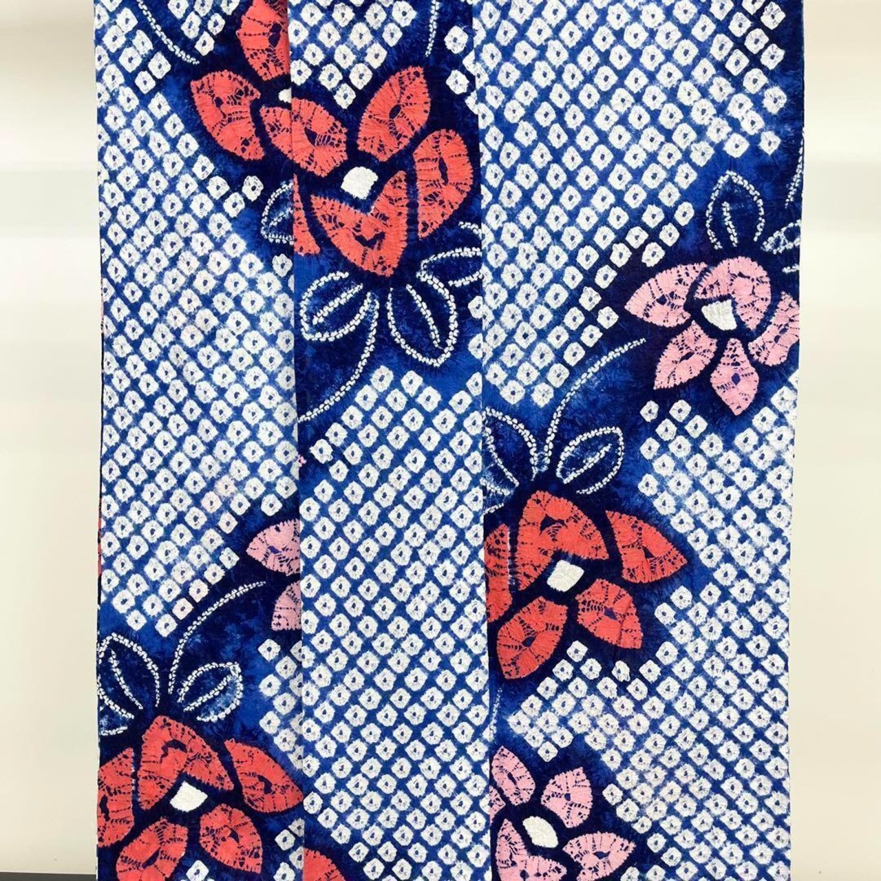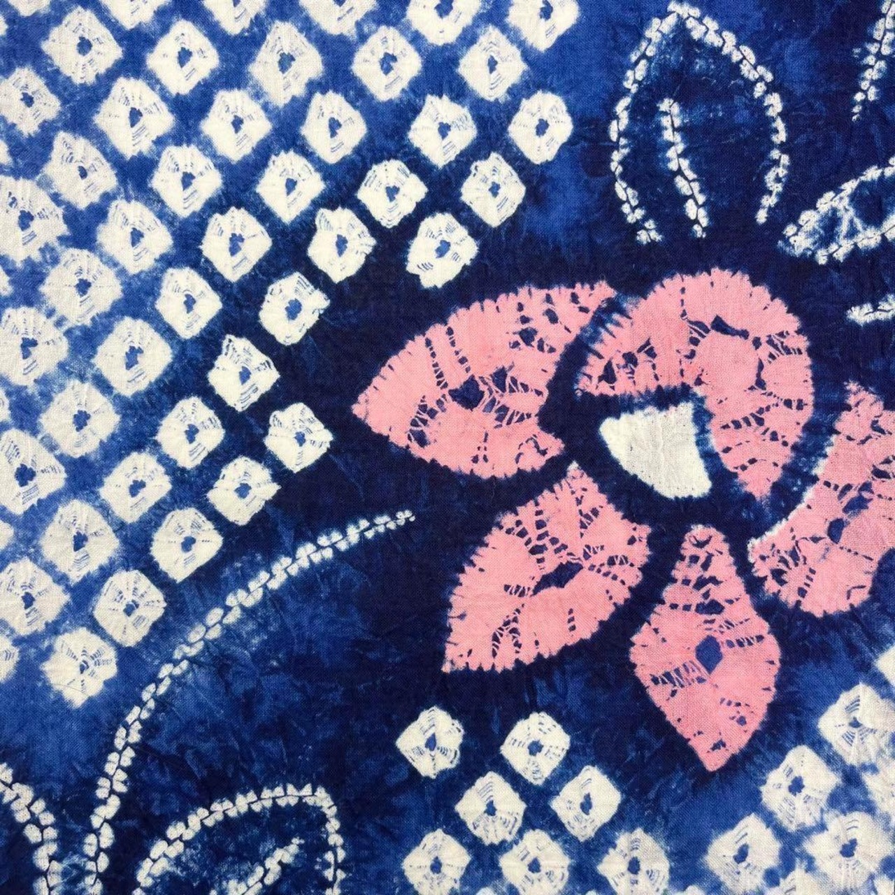 浴衣 有松鳴海本絞り 花柄模様 藍色 K-3732 着物 きもの kimono 和服 和装 中古 リサイクル着物 【送料無料】