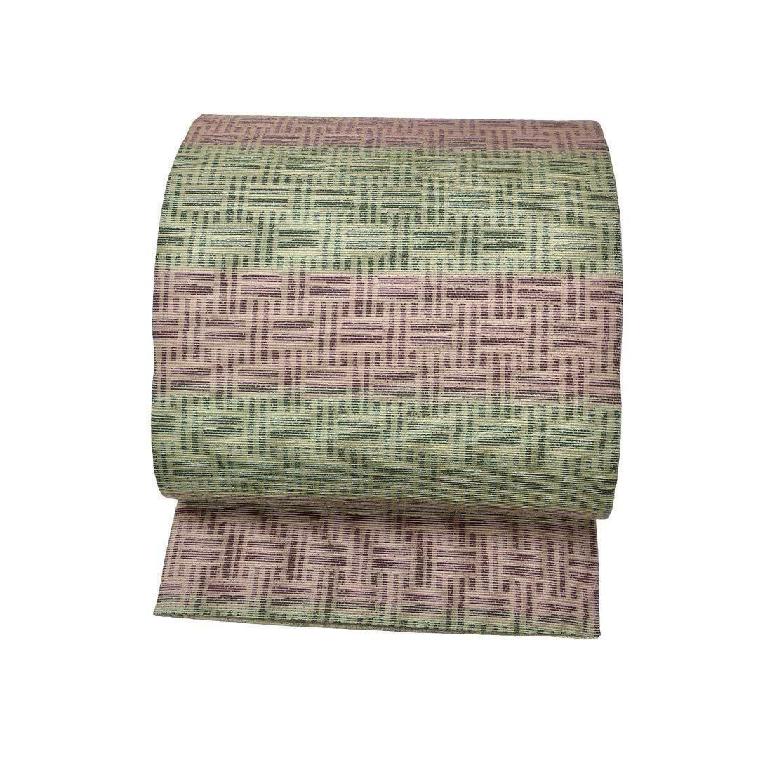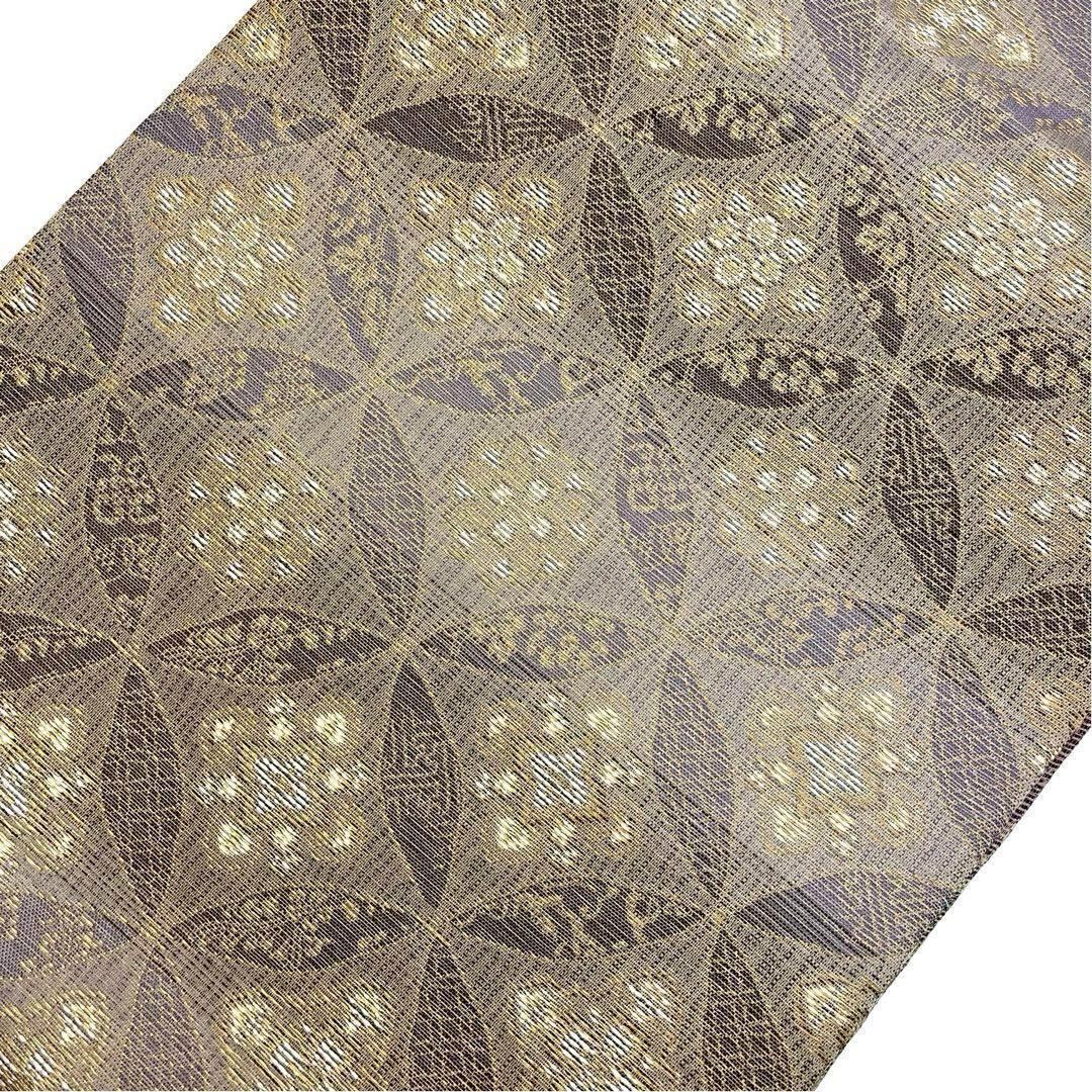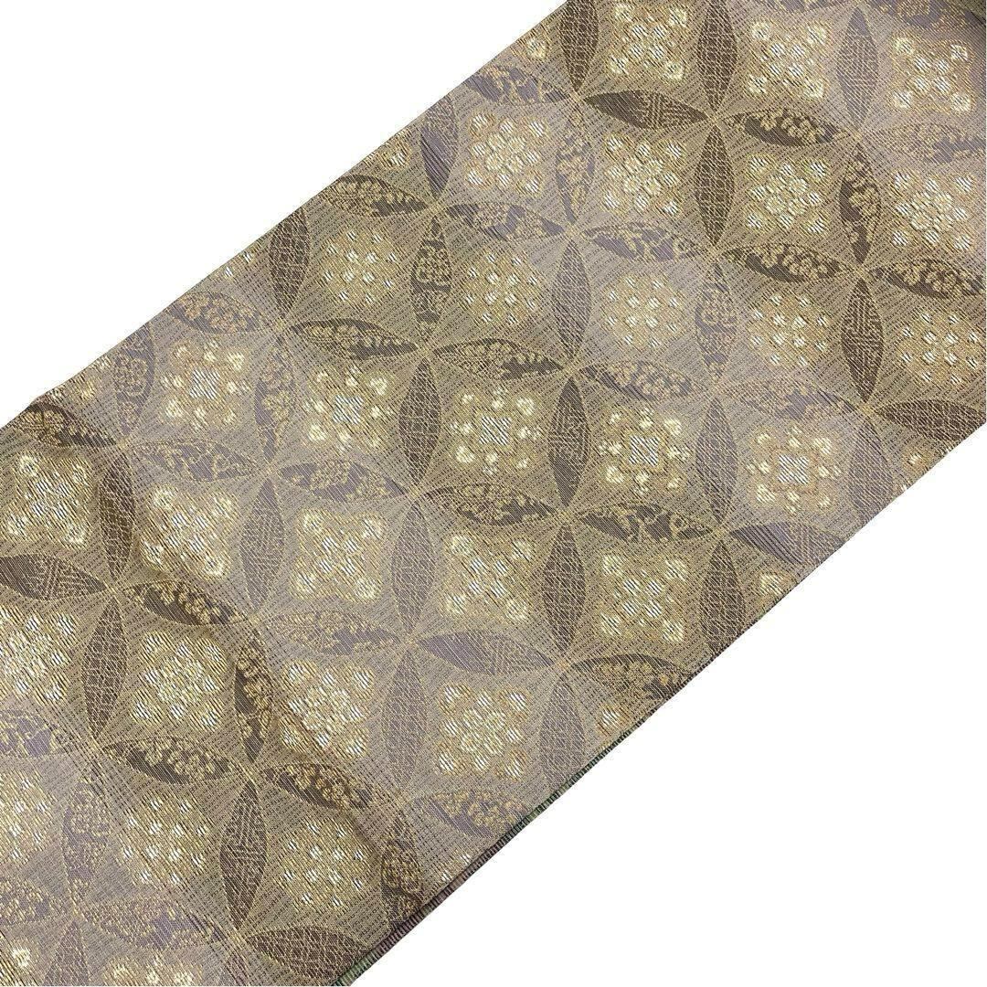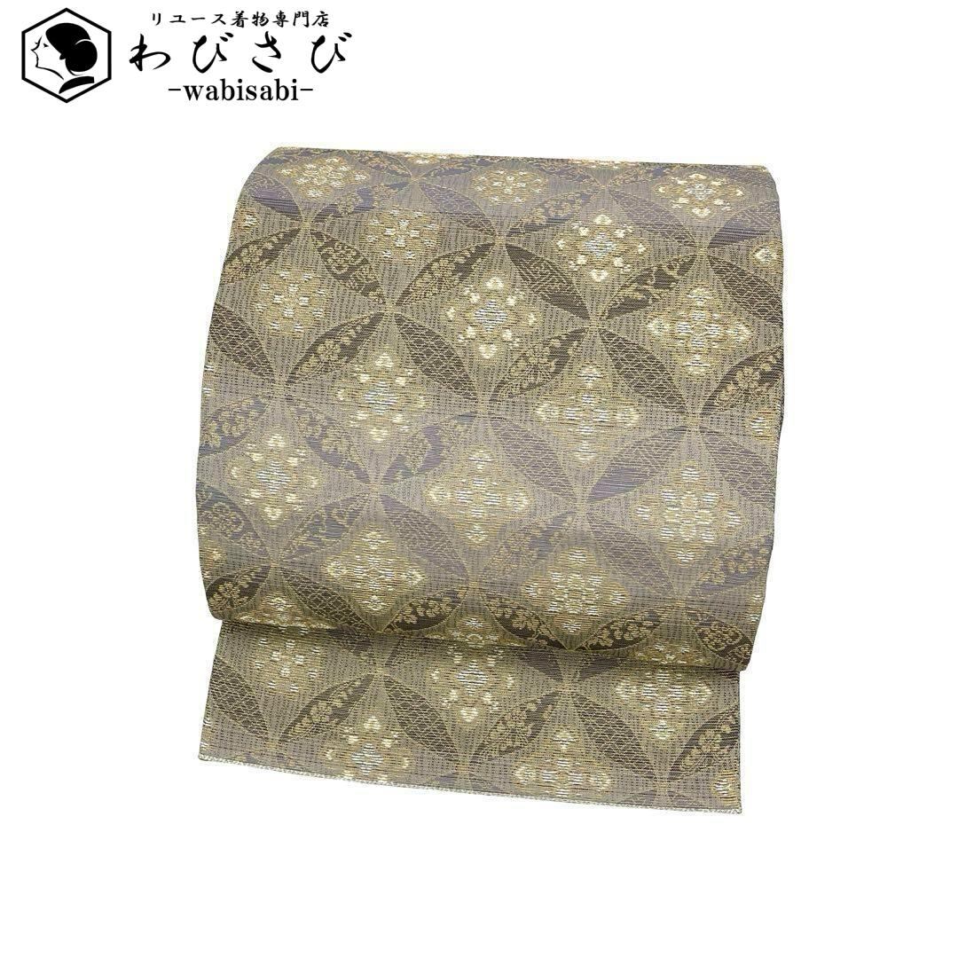 袋帯 リバーシブル 花七宝繋ぎ 横段織模様 金糸 砂色 O-3683 着物 きもの kimono 和服 和装 中古 リサイクル着物 【送料無料】