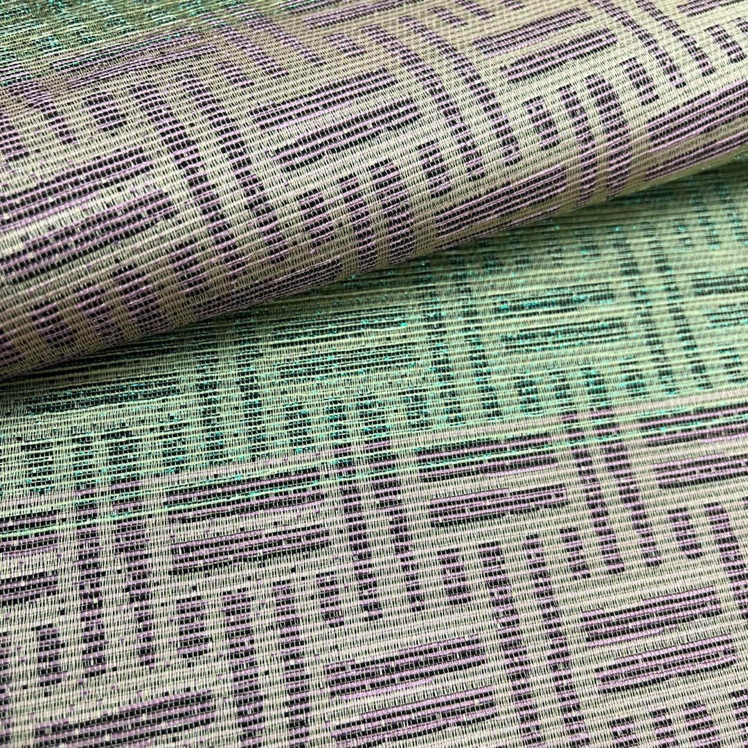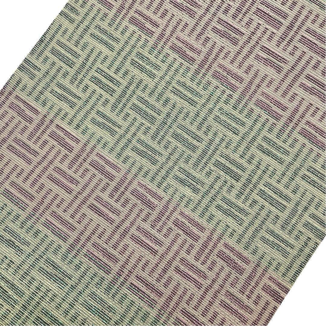 砂色ベースのお色味に花七宝繋ぎの柄裄、二色の色彩の横段織模様の両面お使い頂ける素敵なお品でございます。