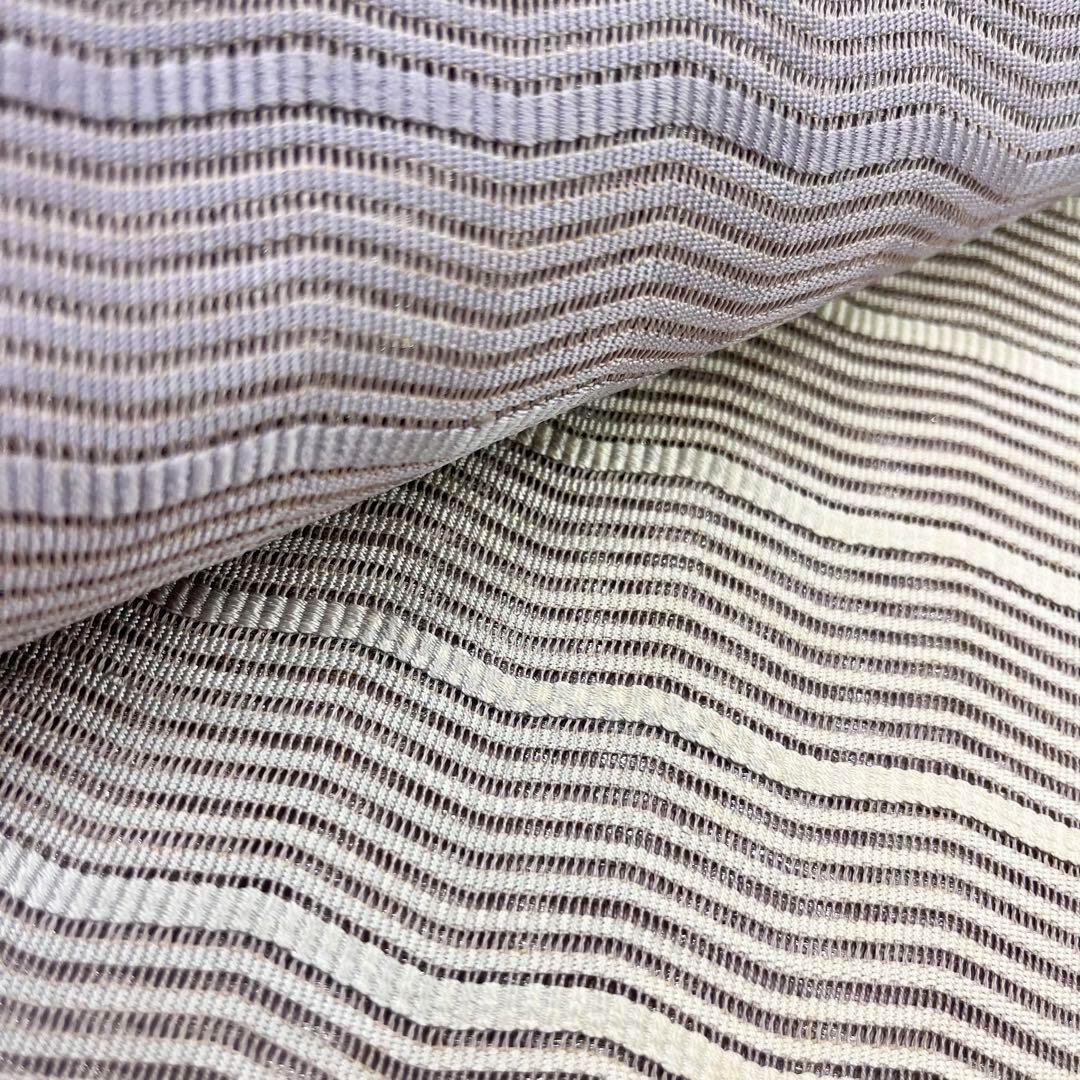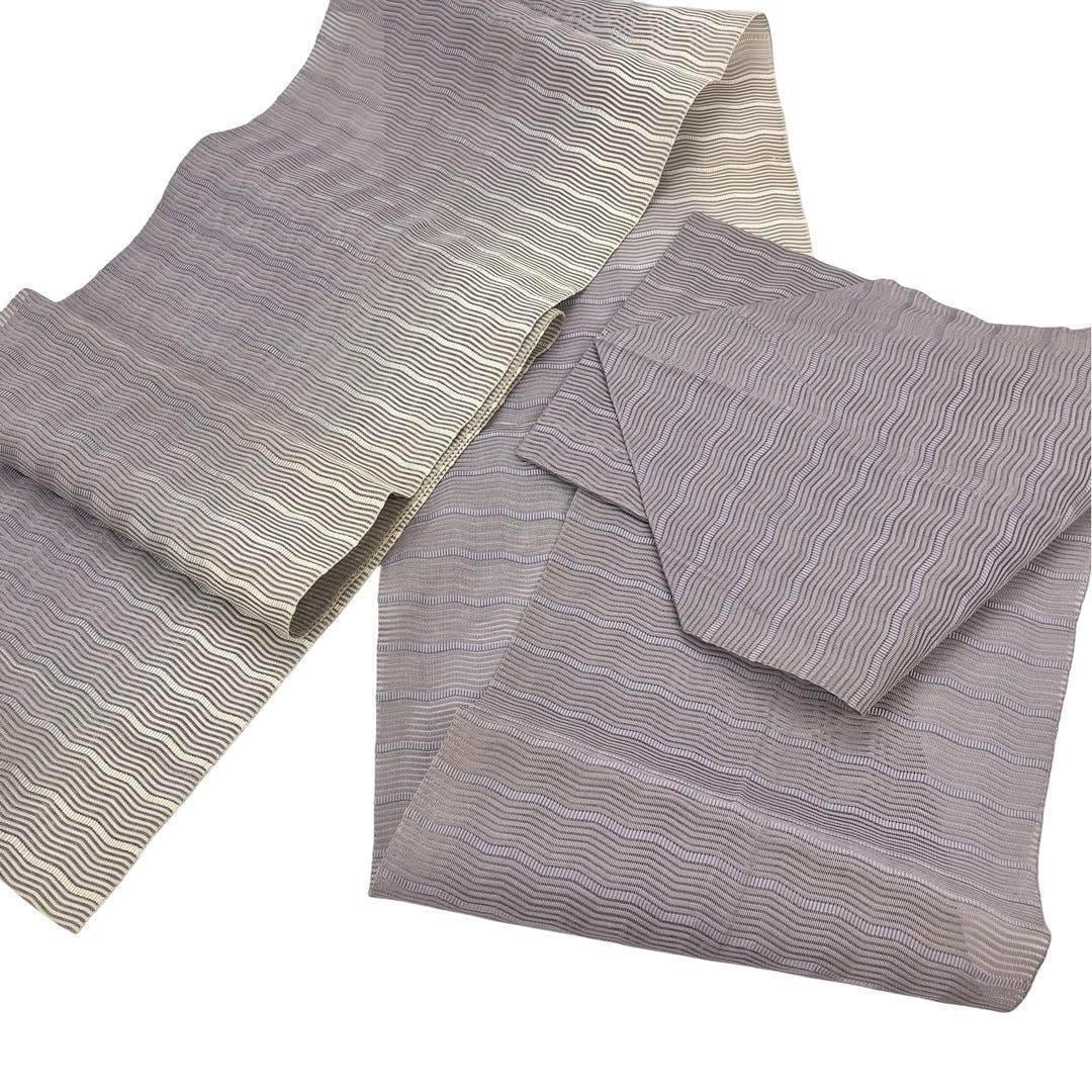 藤鼠色ベースのグラデーションによれ縞の織模様がデザインされた素敵な柄裄のお品でございます。