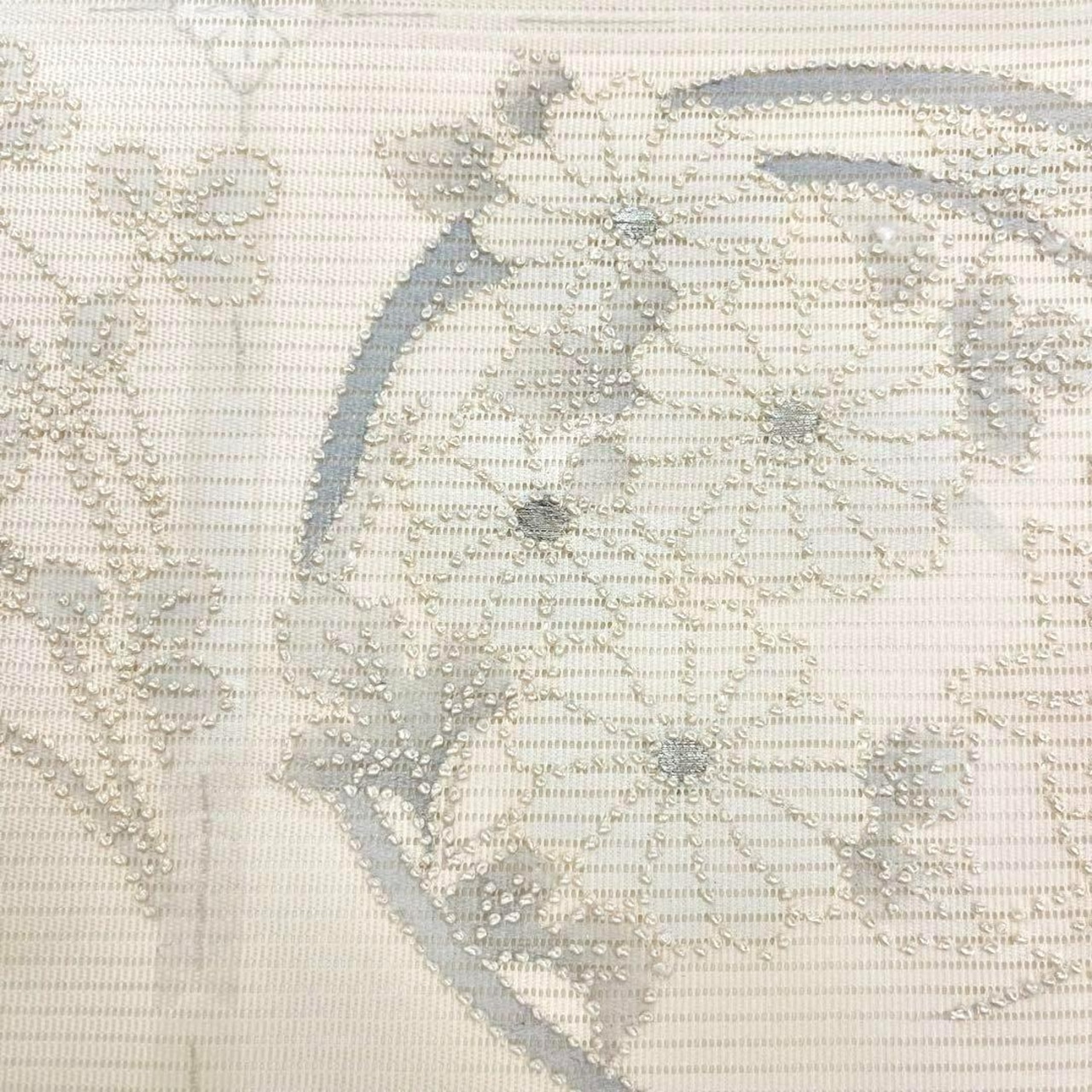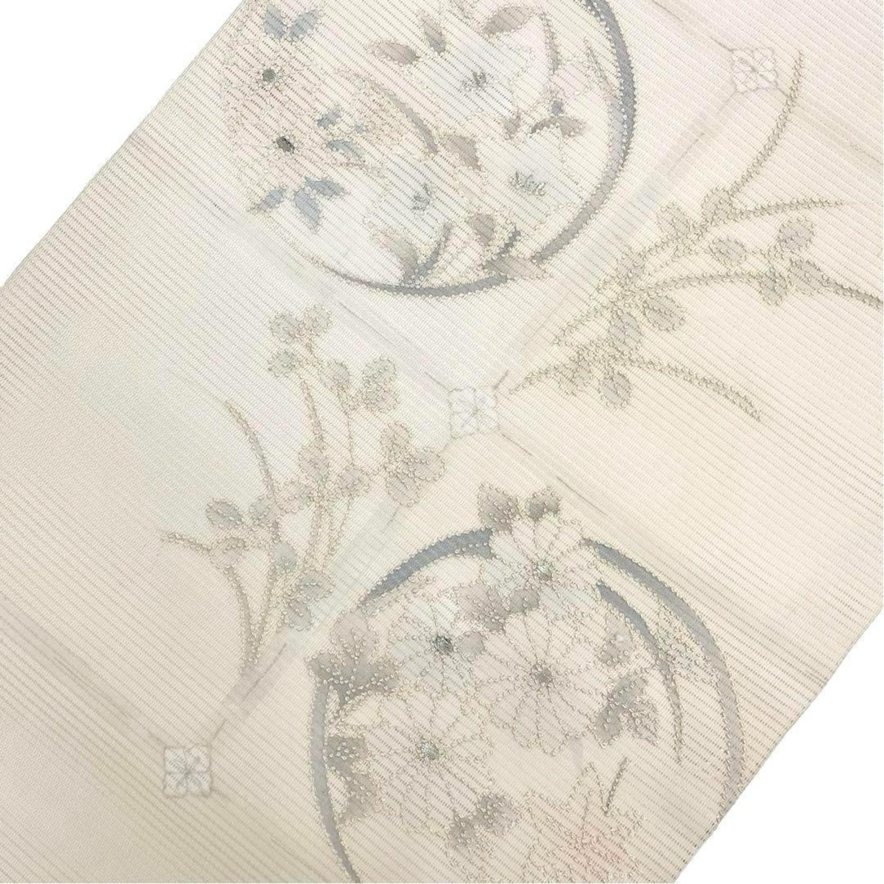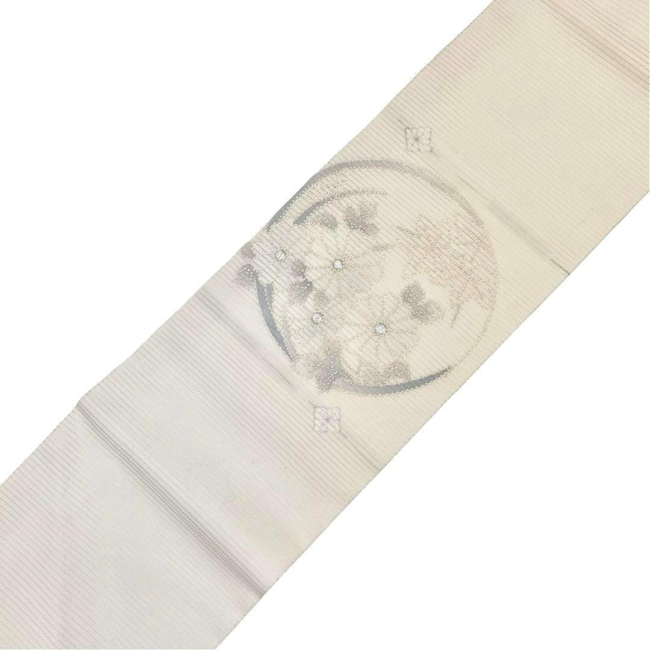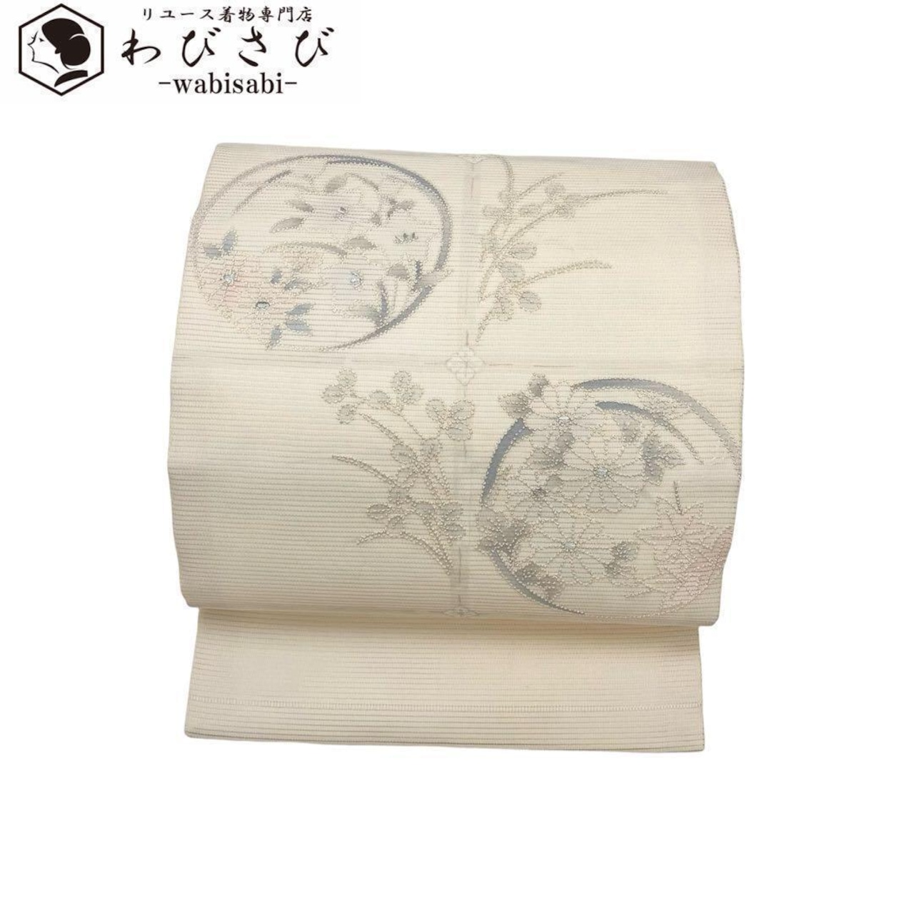 夏帯 絽綴れ 名古屋帯 相良刺繍 丸に花模様 生成色 O-3765