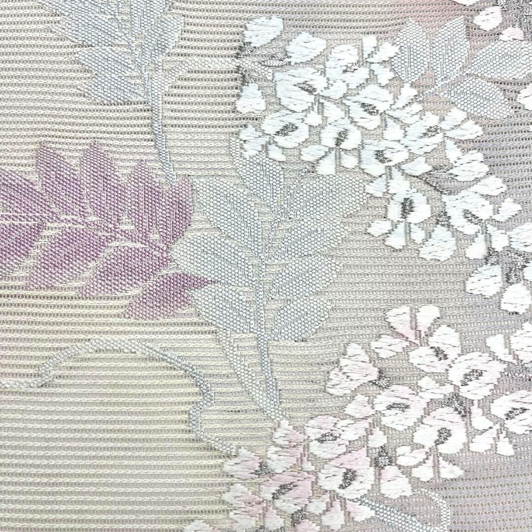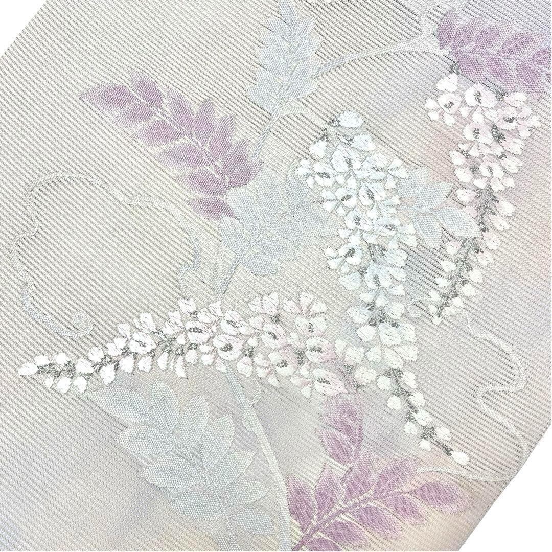 夏帯 絽 名古屋帯 藤の花 刺繍 銀糸 薄象牙色 O-3772