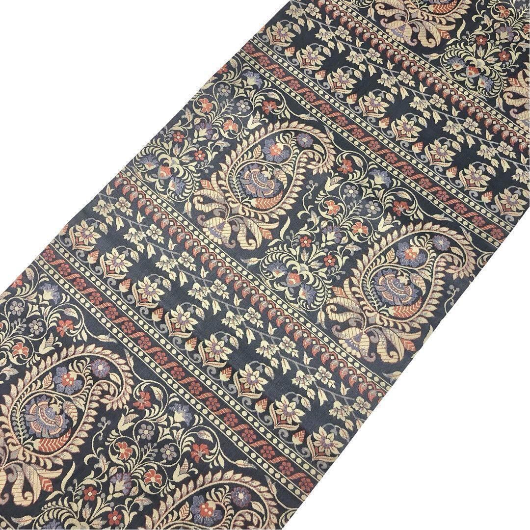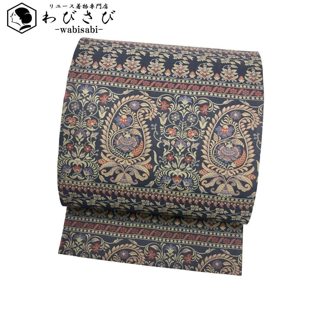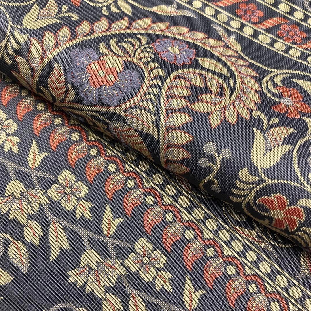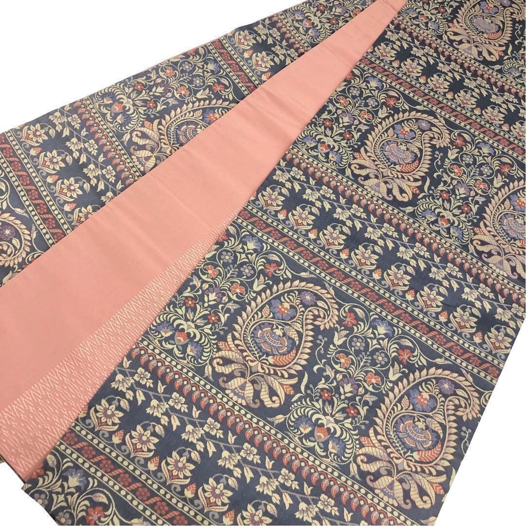 藍錆色の落ち着きのあるお色味にペイズリー柄、横段花唐草模様がデザインされた素敵な柄裄のお品でございます。