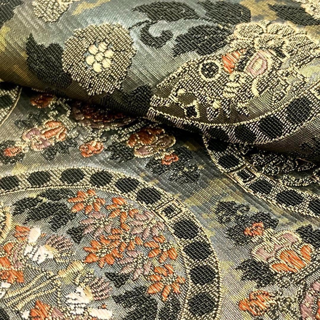 袋帯 丸に狩人 美しい華柄模様 花唐草模様 金糸 O-3791 着物 きもの kimono 和服 和装 中古 リサイクル着物 【送料無料】