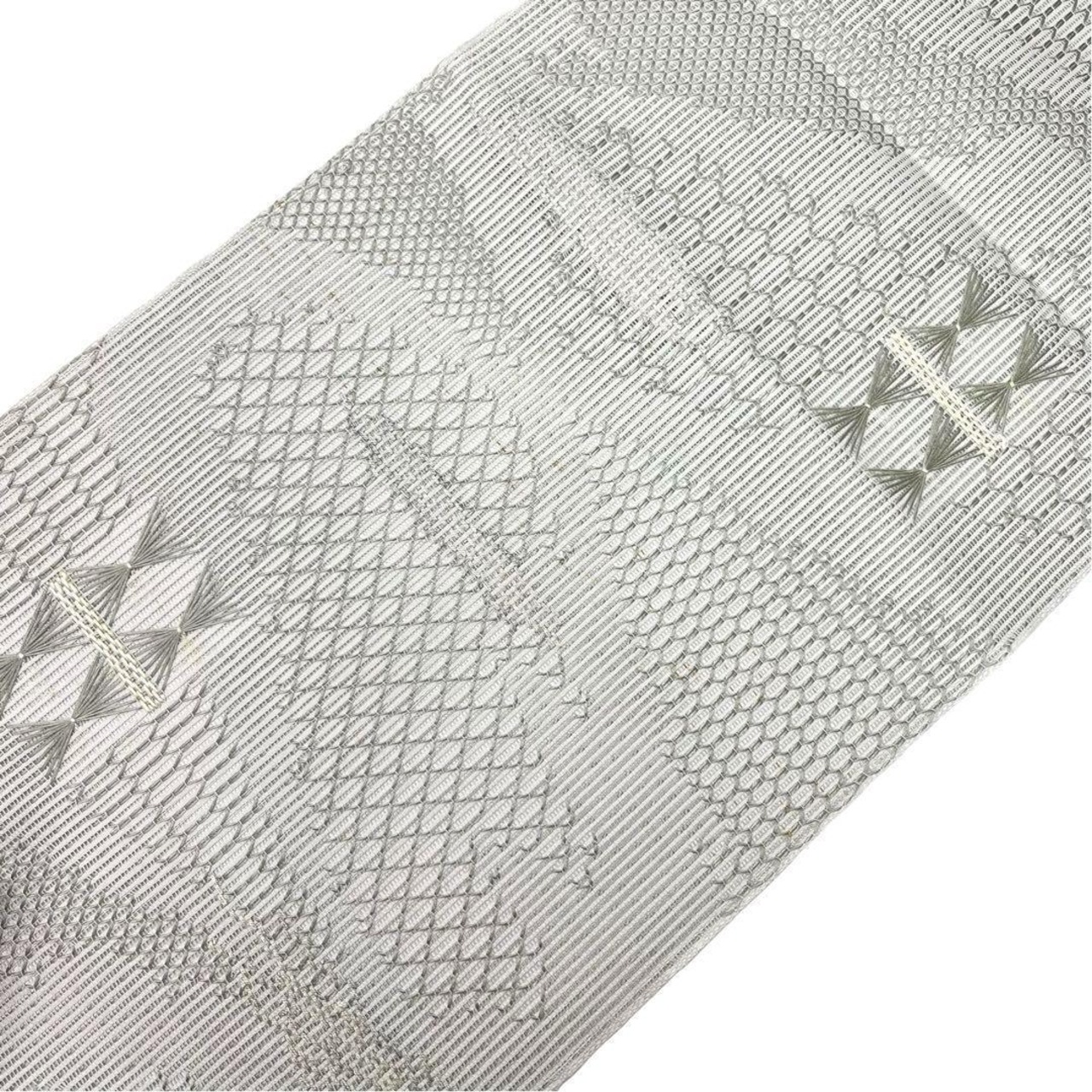 夏帯 名古屋帯 西陣 縦絽 美しい織模様 証紙付 雲井鼠色 長尺 O-3680