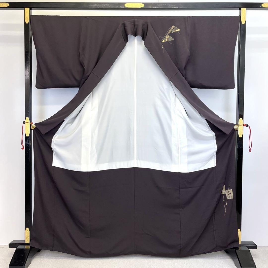 訪問着 三角模様に多様な柄裄 金糸 臙脂墨色 トールサイズ K-3748