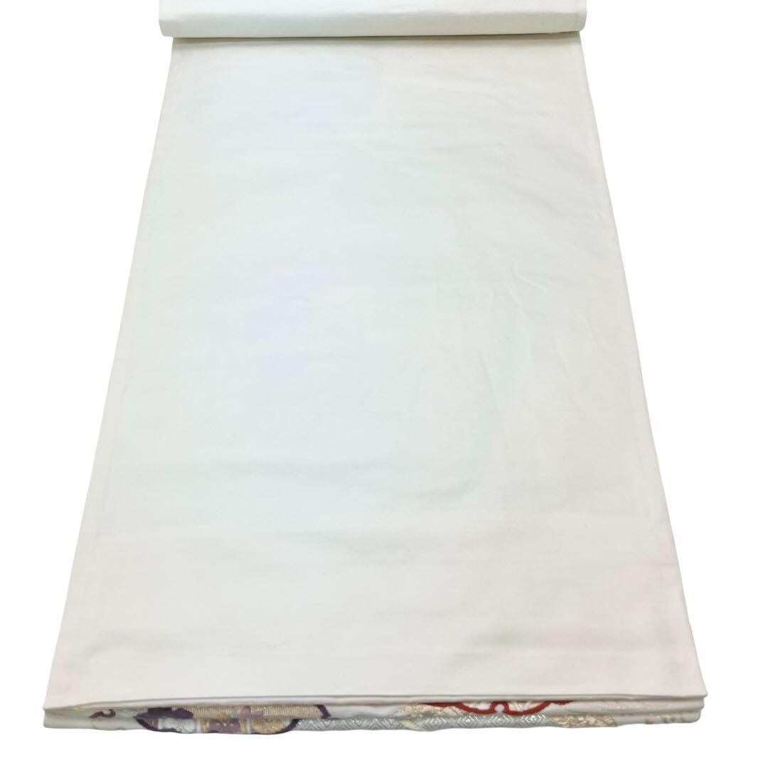 袋帯 唐織 都つづれ 雪輪に美しい花柄模様 金銀糸 乳白色 O-3801 着物 きもの kimono 和服 和装 中古 リサイクル着物 【送料無料】