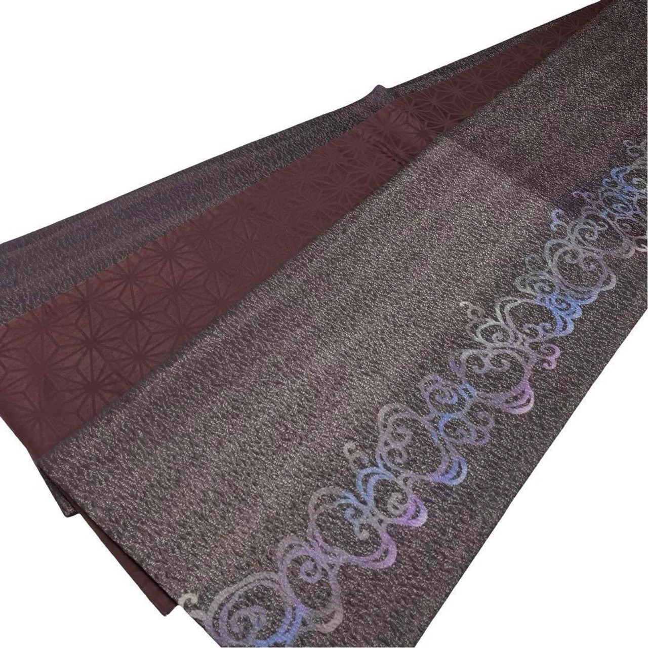 黒色のお色に銀通し、グラデーションのモダンな縦柄の抽象模様がデザインされた素敵な柄裄のお品でございます。