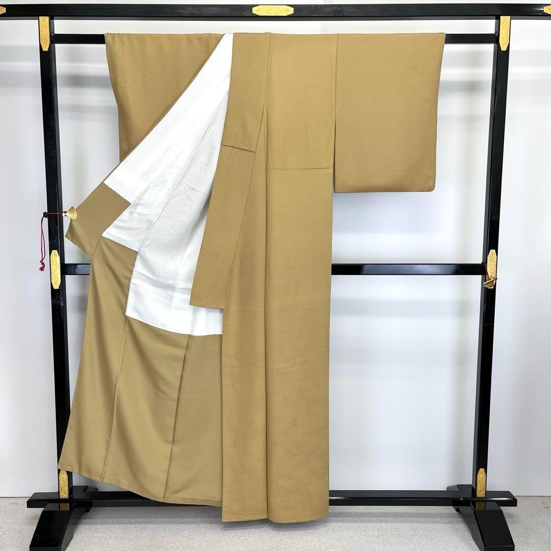 色無地 加賀友禅 百貫達雄 八掛に南天の花 紗綾形地模様 煎茶色 K-3755