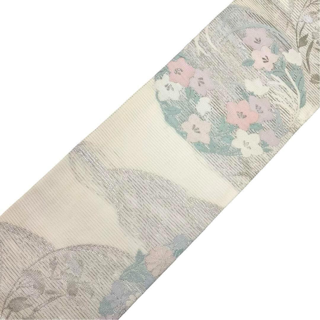 夏帯 名古屋帯 絽 花模様 桔梗 菊 銀糸 乳白色 O-3749 着物 きもの kimono 和服 和装 中古 リサイクル着物 【送料無料】