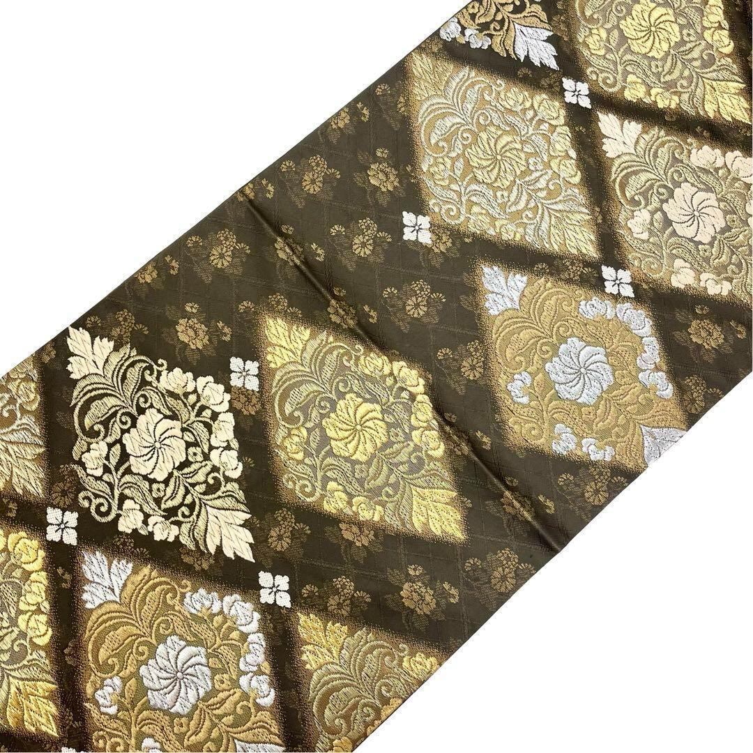 千歳茶色の落ち着きのあるお色味、菱形に美しい花柄模様がデザインされた素敵な柄裄のお品でございます。
