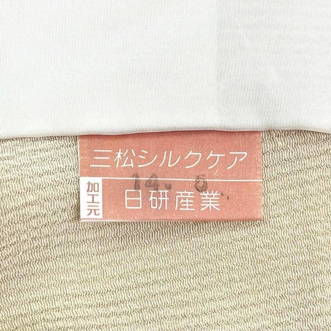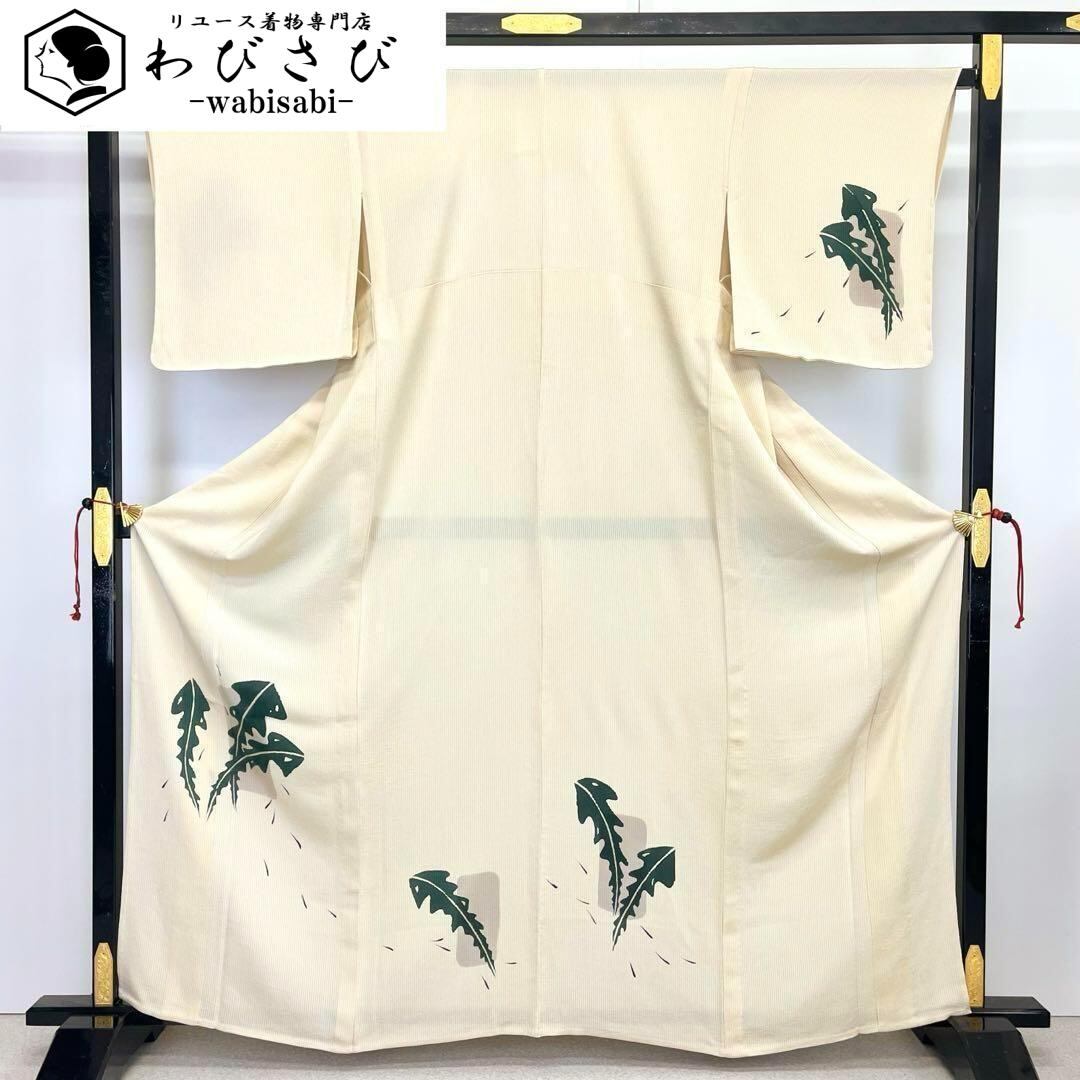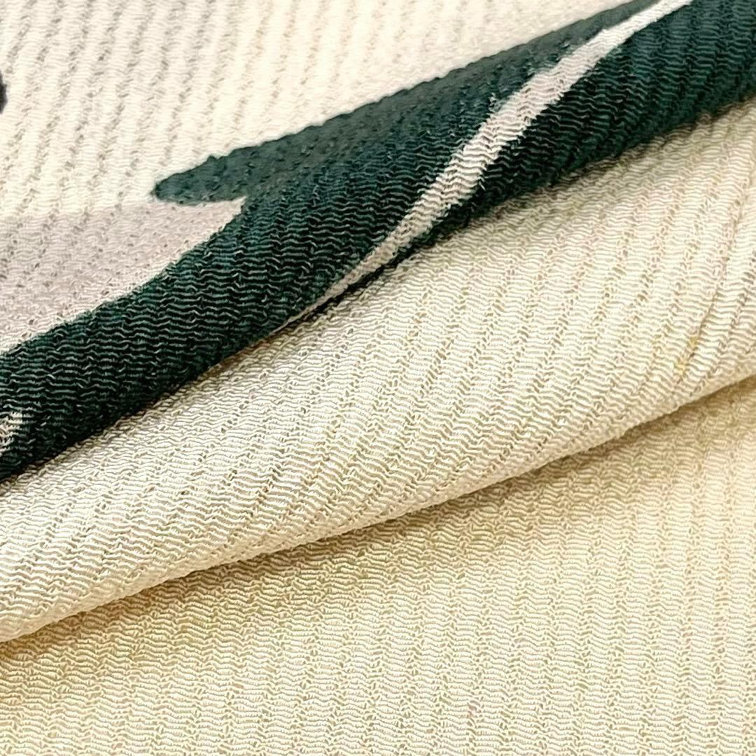生成色の上品なお色味の柔らかい縮緬に水草にメダカ柄がデザインされた風流な柄裄のお品でございます。