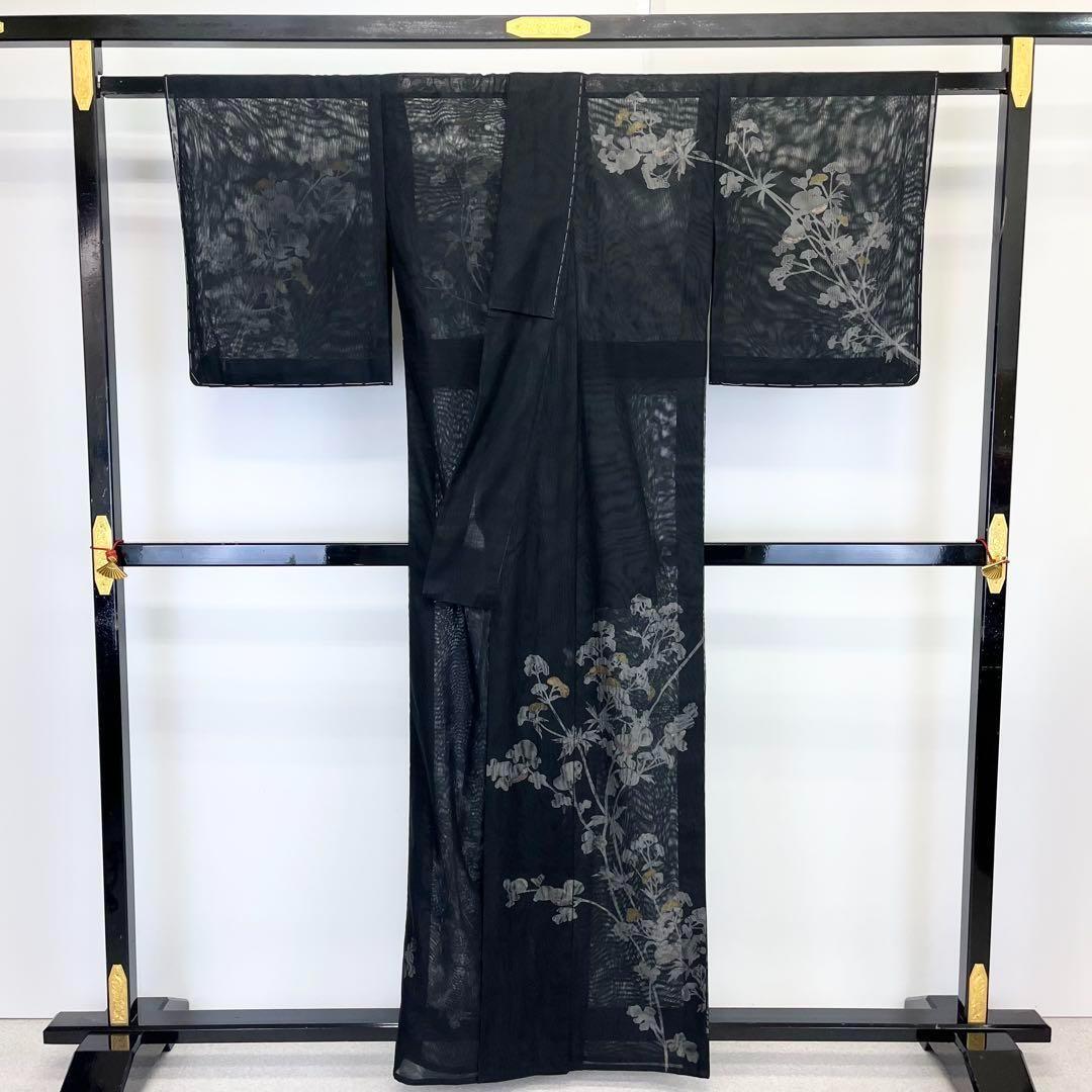 紗合せ 付下げ 上品な花草模様 金彩 黒色 しつけ糸 K-3783
