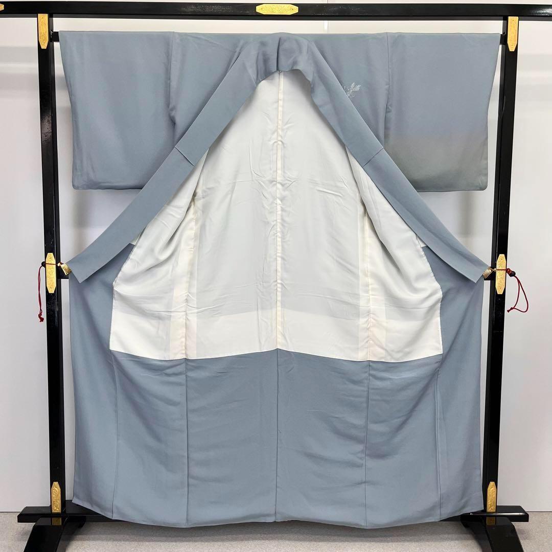 付下げ 美しい華模様 鳳凰 刺繍柄 金糸 薄湊鼠色 縮緬 K-3777