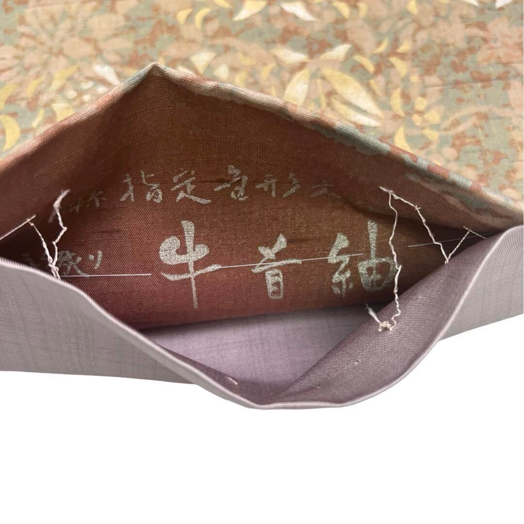 袋帯 牛首紬 石川県指定無形文化財 花草模様 金彩 丁子茶色 O-3833