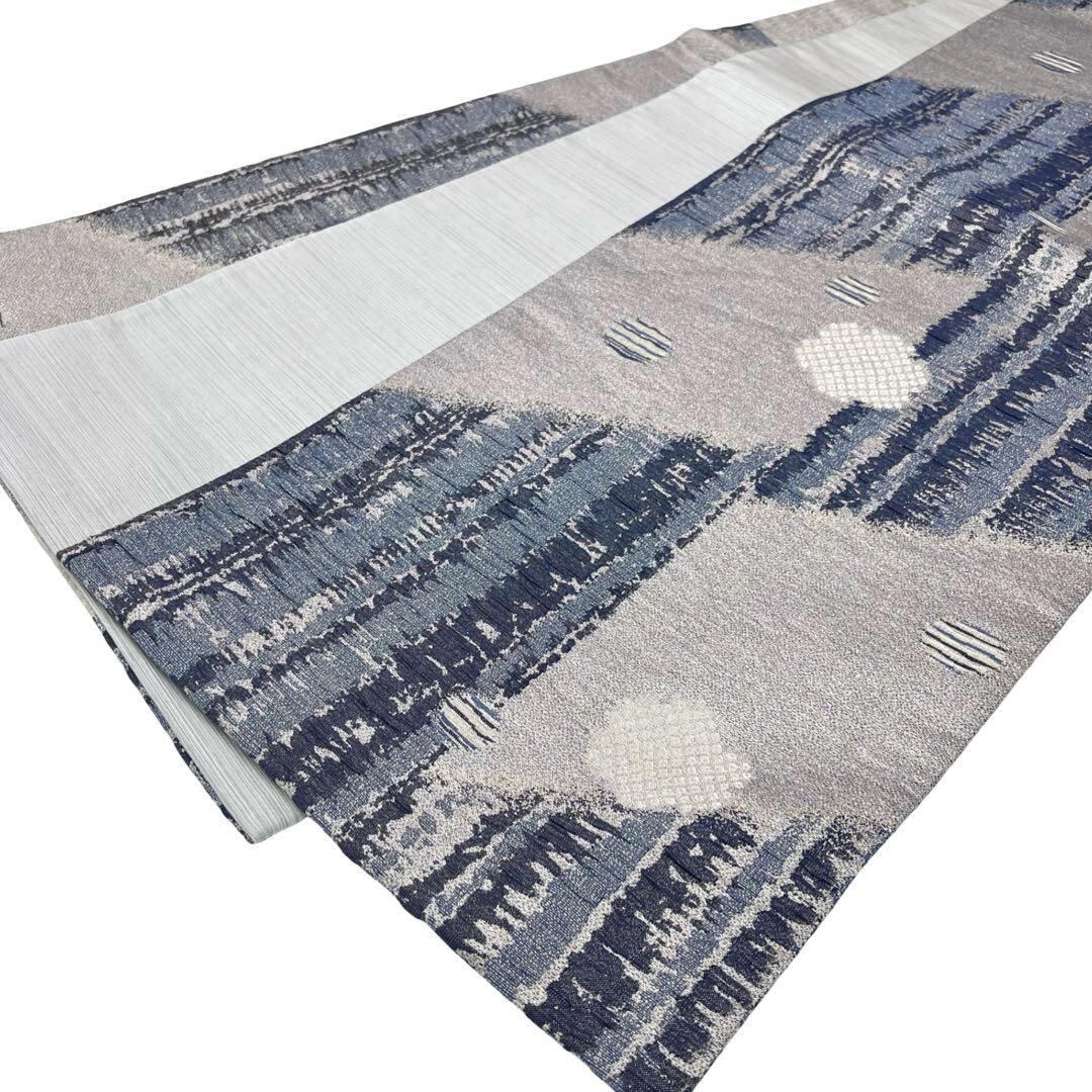 天然藍染、灰汁発酵建藍染の美しい雰囲気の良い藍色、縦縞に雪輪模様がデザインされた素敵なお品でございます。
