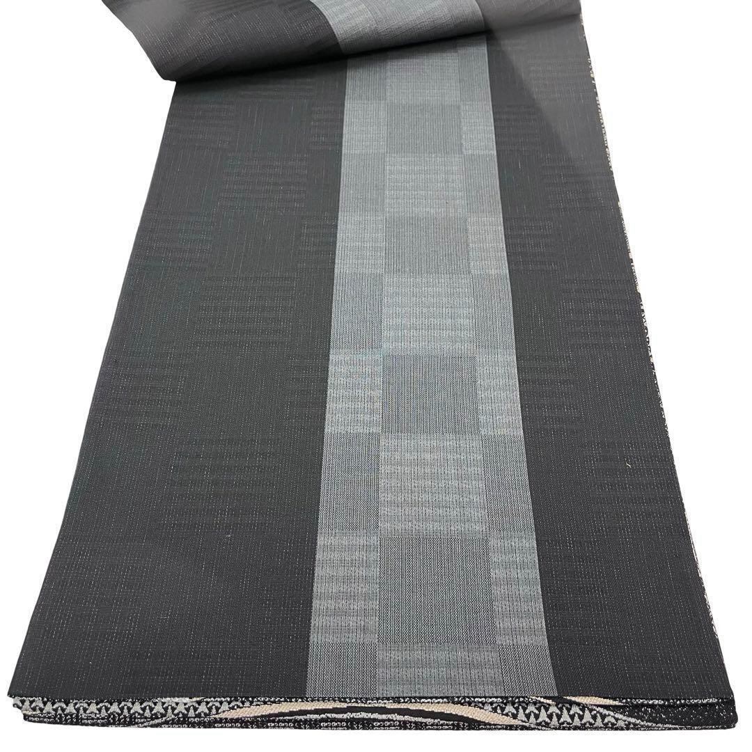 モノトーンベースのモダンな柄裄、曲線に多様な織模様に月のような丸模様がデザインされた素敵な柄裄のお品でございます。
