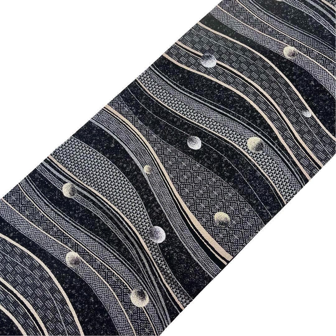 袋帯 モダン柄 曲線に丸模様 金銀糸 モノトーン ガード加工 O-3842