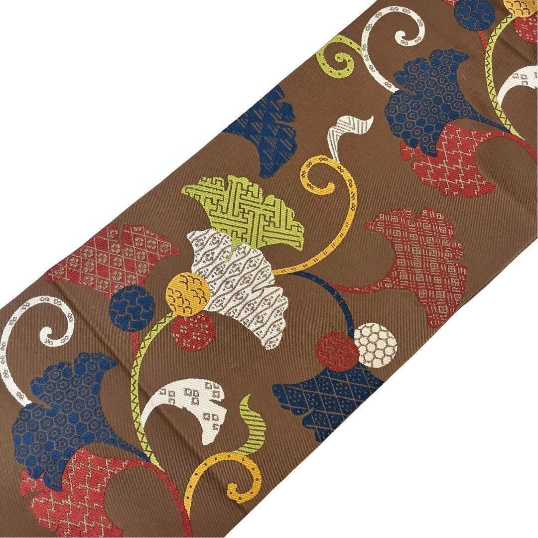 鳶色の落ち着きのあるお色に彩り鮮やかなイチョウ模様がデザインされた素敵な柄裄のお品でございます。