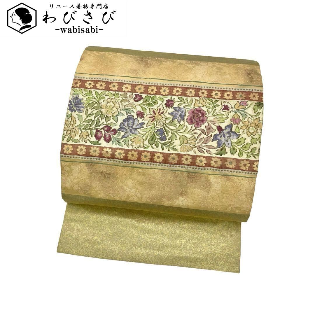 名古屋帯 横段花柄織模様 金糸 金色 O-3845 着物 きもの kimono 和服 和装 中古 リサイクル着物 【送料無料】