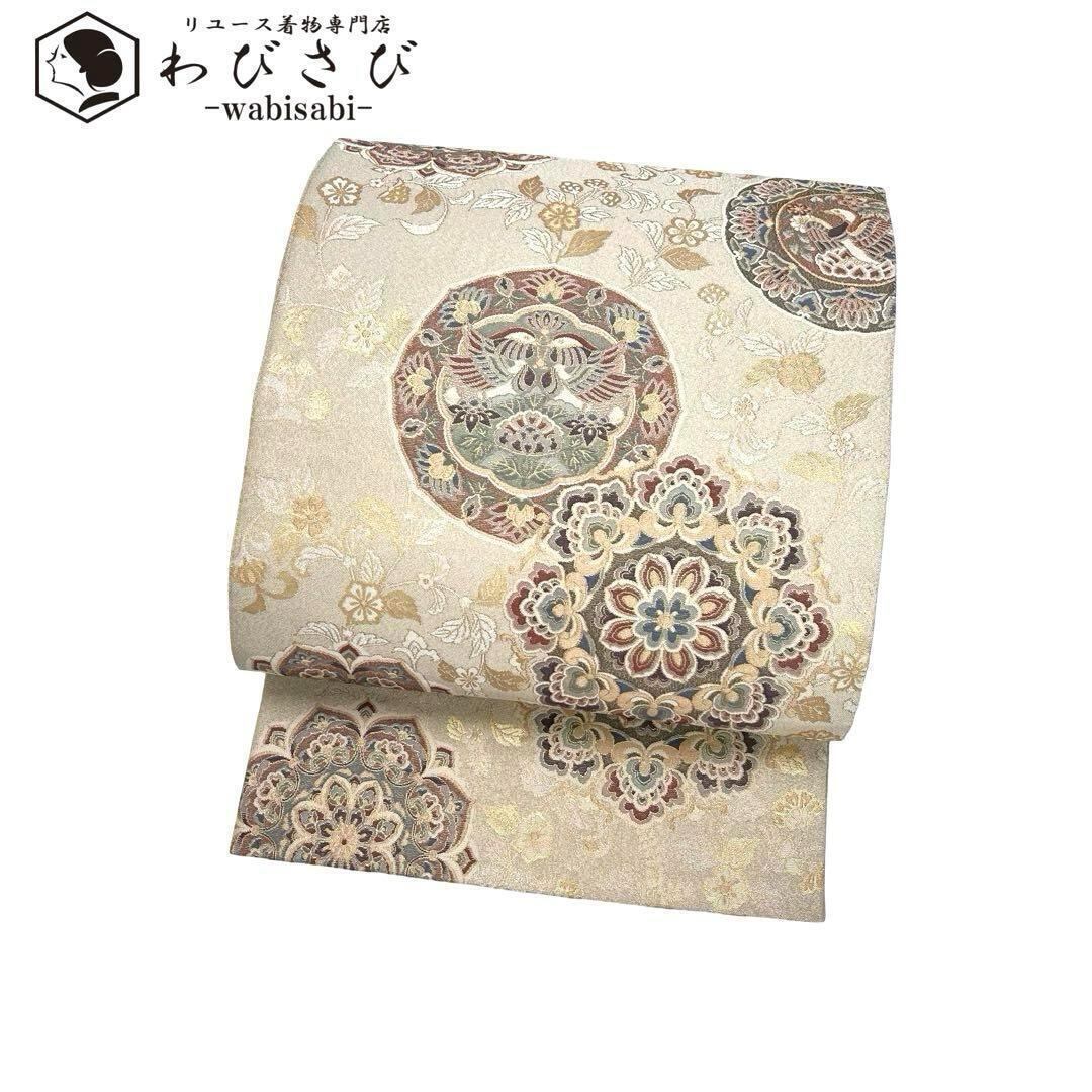 袋帯 明つづれ 華文更紗文 綴れ織 亜麻色 金糸 O-3860