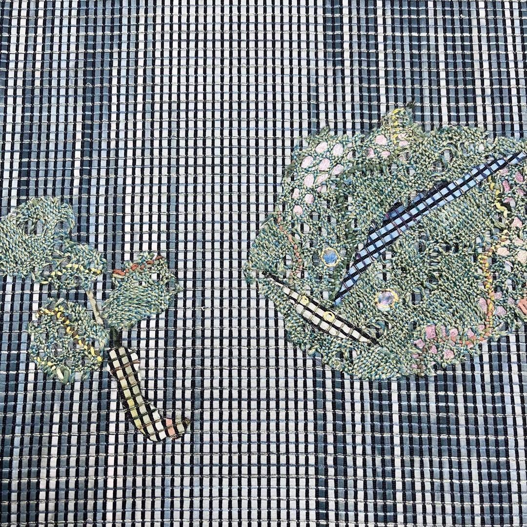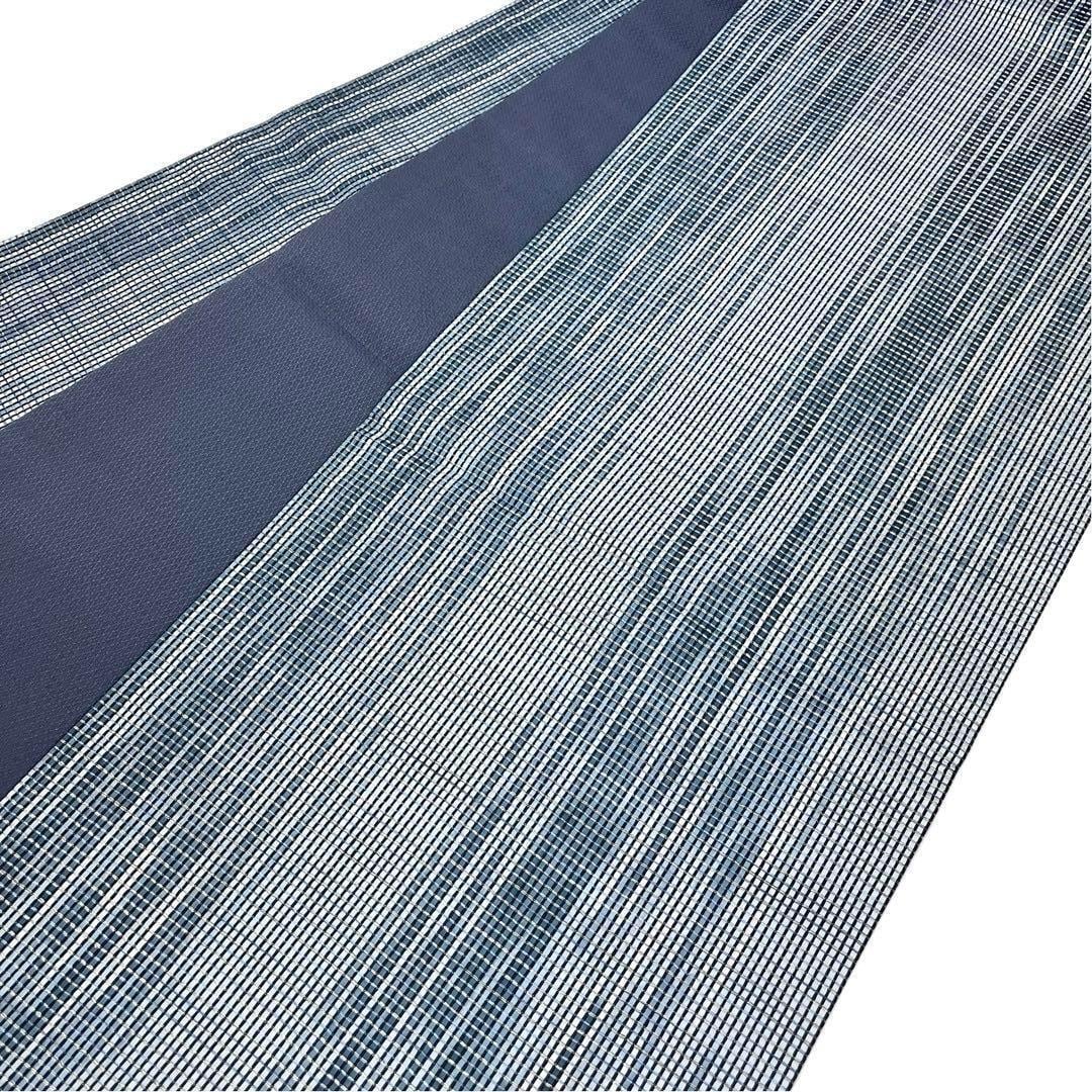 美しい青味の縦柄の織模様にあんこうの柄裄がデザインされた珍しい素敵な柄裄のお品でございます。
