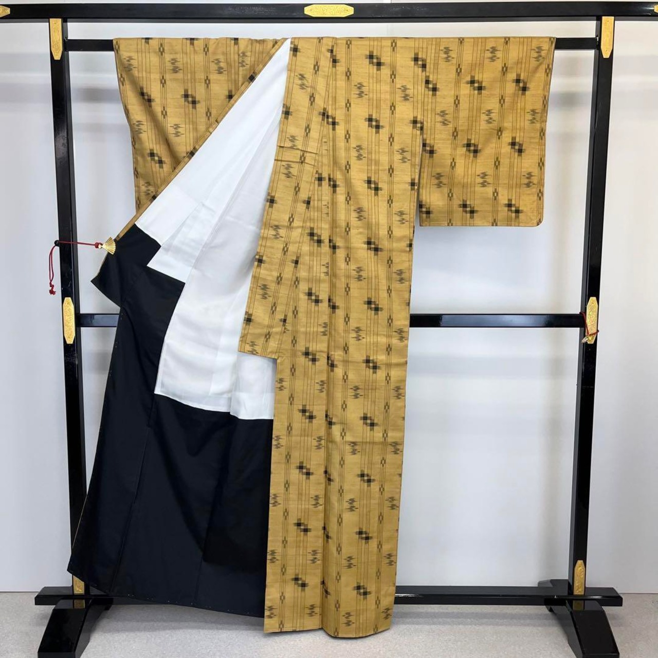 本場久米島紬 重要無形文化財 草木染 琉球絣 証紙付 梅谷渋色 K-3757
