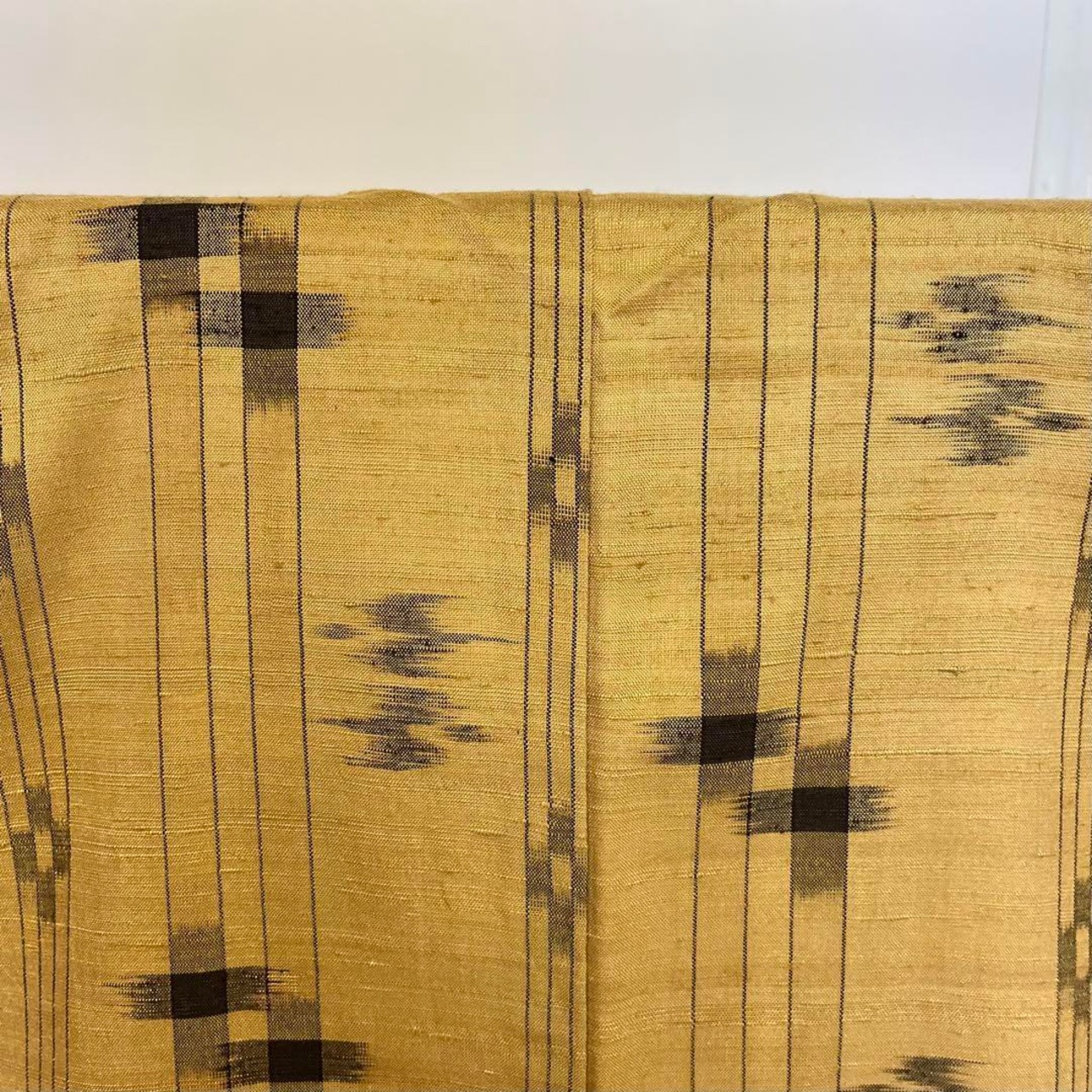 国指定重要無形文化財、草木染と泥染で染められ職人の手織りで丁寧に仕上げられた琉球柄の絣模様、梅谷渋色の雰囲気の良いお色味の希少なお品でございます。