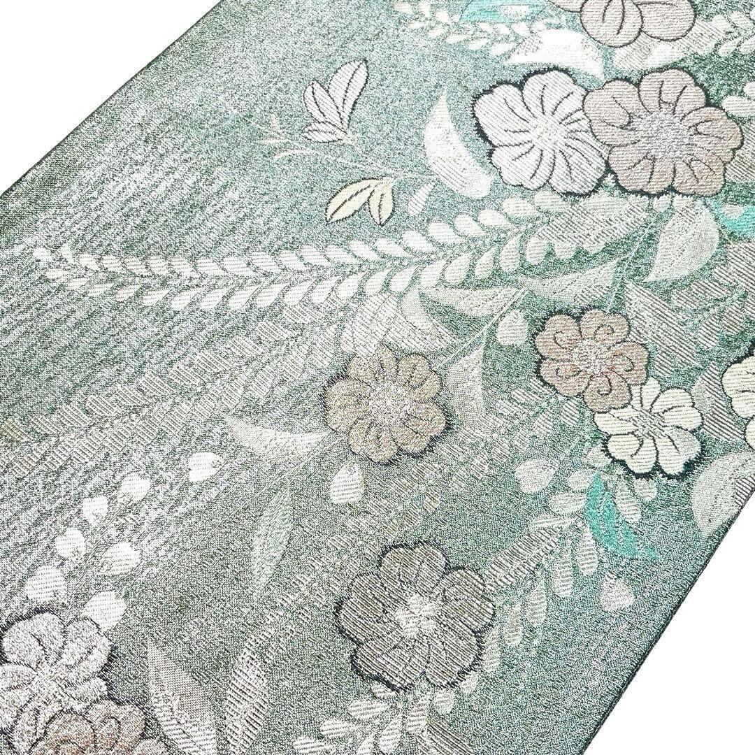 秘色ベースの淡いお色味に美しい辻が花の織模様がデザインされた素敵な柄裄のお品でございます。