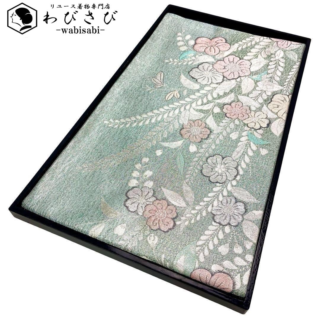 袋帯 美しい辻が花 金銀糸 秘色 O-3867 着物 きもの kimono 和服 和装 中古 リサイクル着物 【送料無料】
