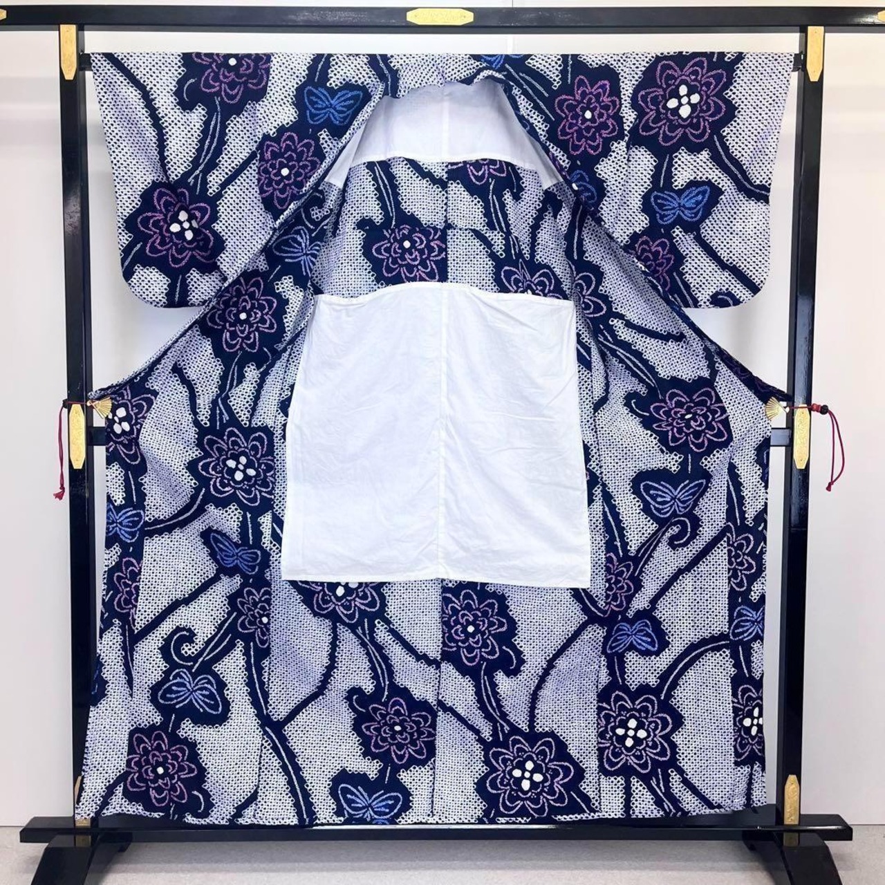 浴衣 有松鳴海本絞り 蝶々と花模様 藍色 K-3833