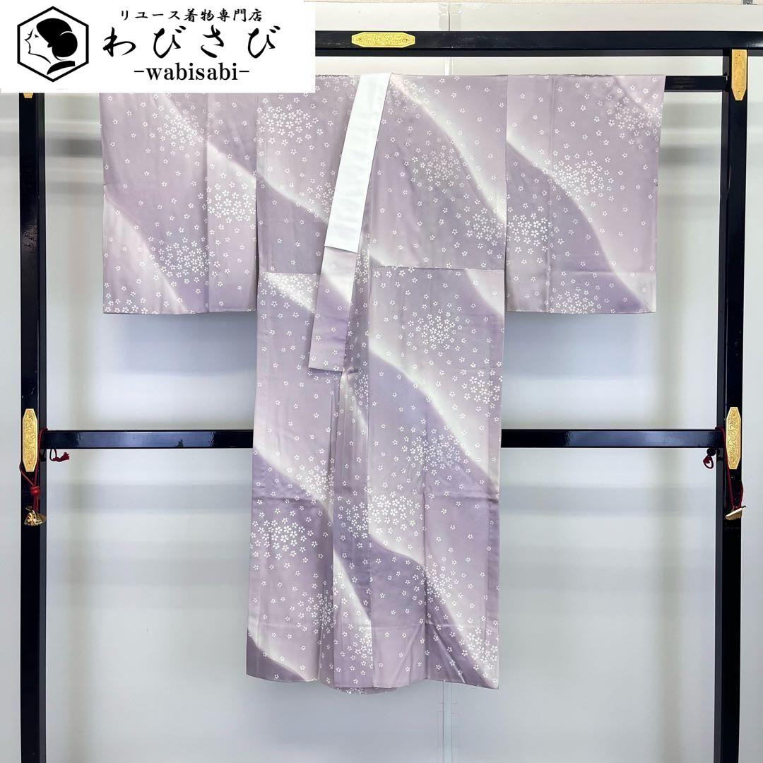 長襦袢 単衣 作家物 はなかざり 桜の花模様 暈し染 淡紫色 J-221 着物 きもの kimono 和服 和装 中古 リサイクル着物 【送料無料】