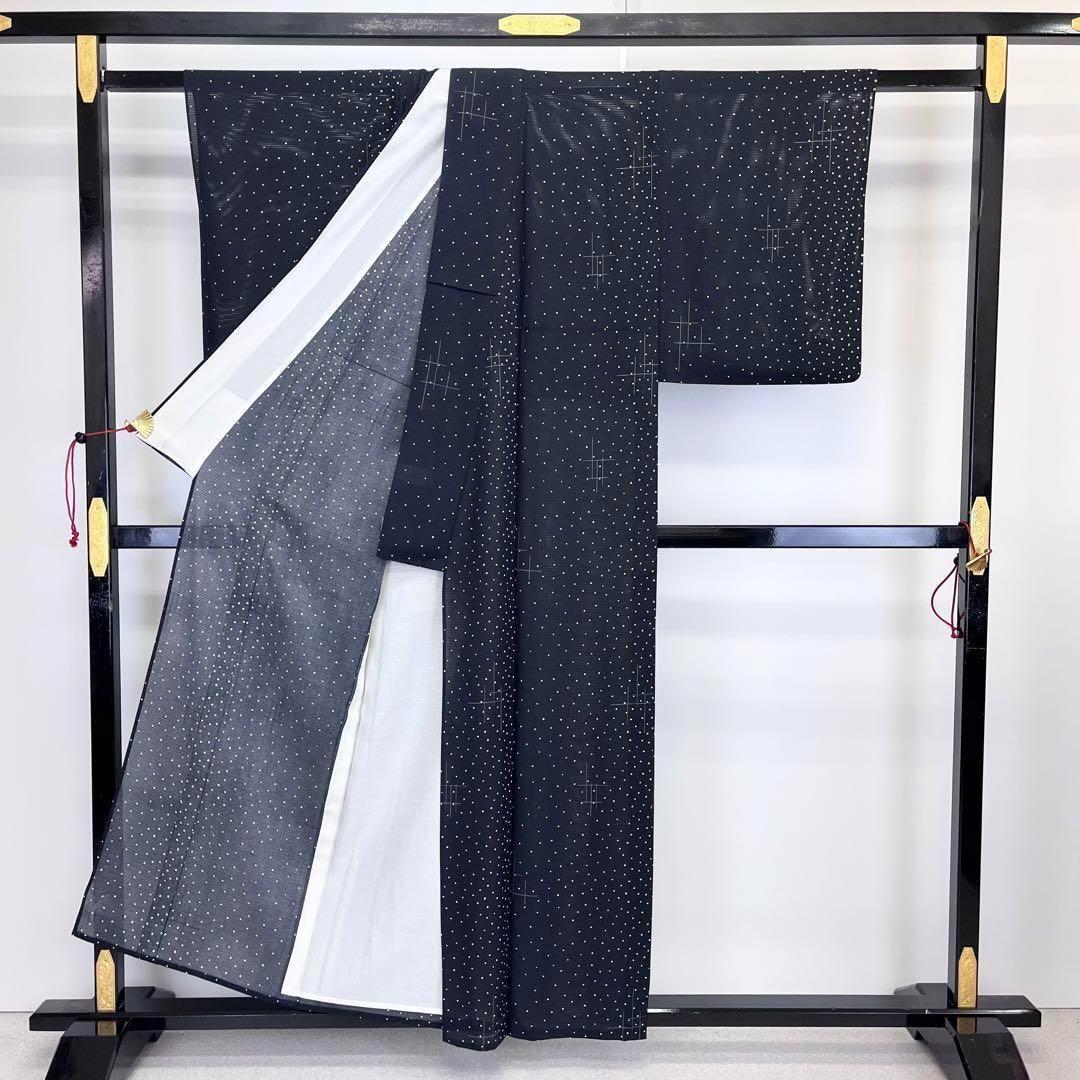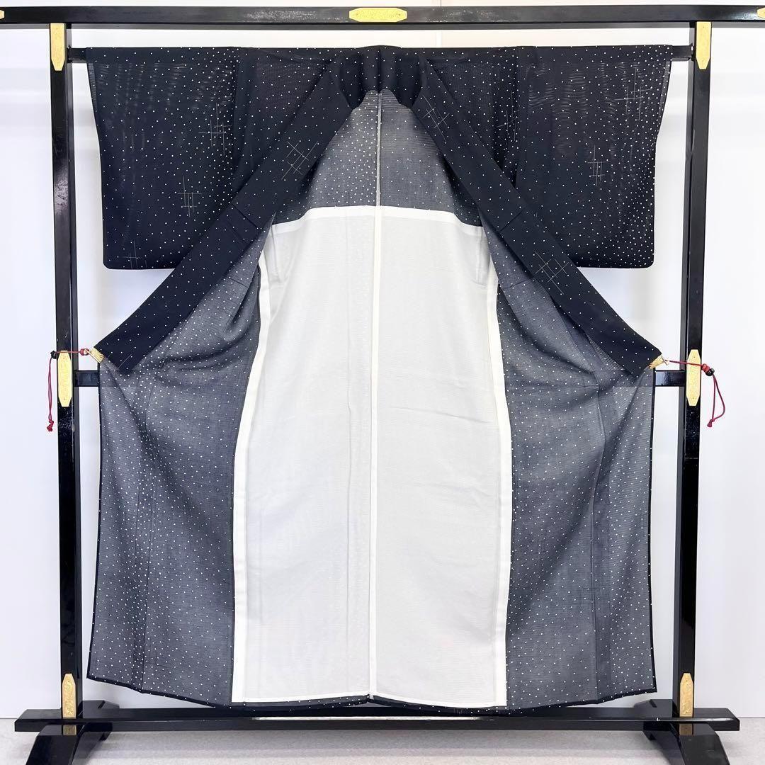 夏着物 絽 小紋 小さな四角散らし模様 モノトーン 黒色 K-3831 着物 きもの kimono 和服 和装 中古 リサイクル着物 【送料無料】