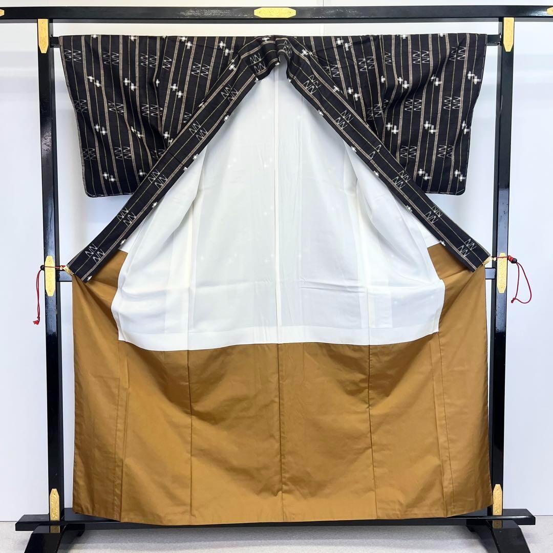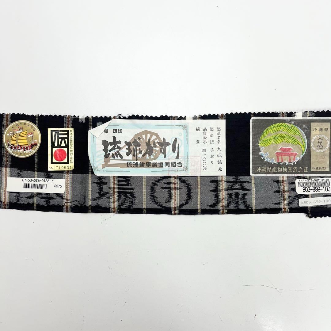 紬着物 本場琉球かすり 琉球本染絣 石板色 証紙付 しつけ糸 K-3806 着物 きもの kimono 和服 和装 中古 リサイクル着物 【送料無料】