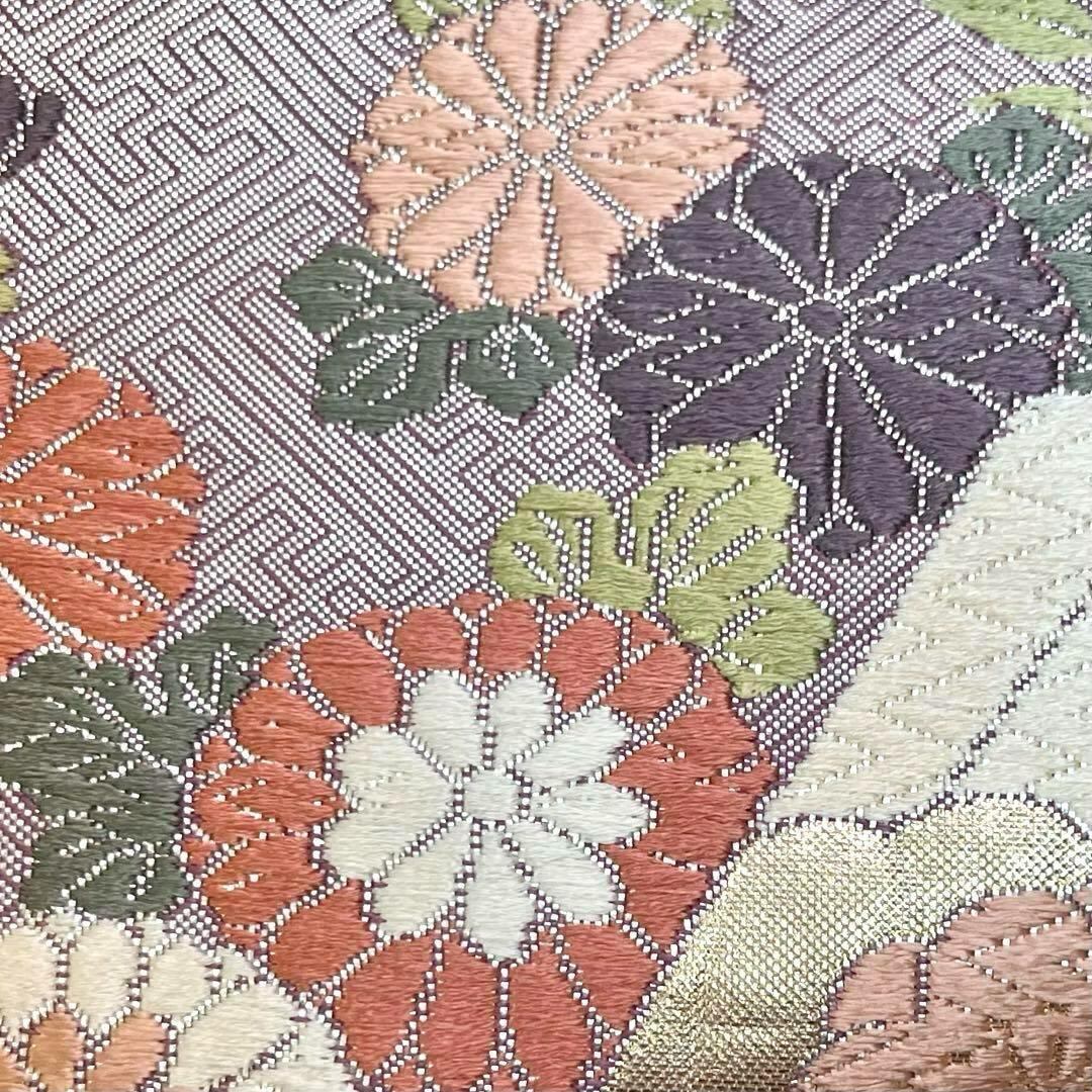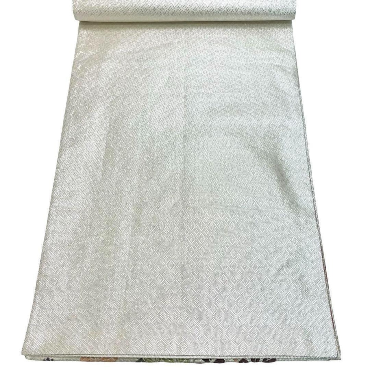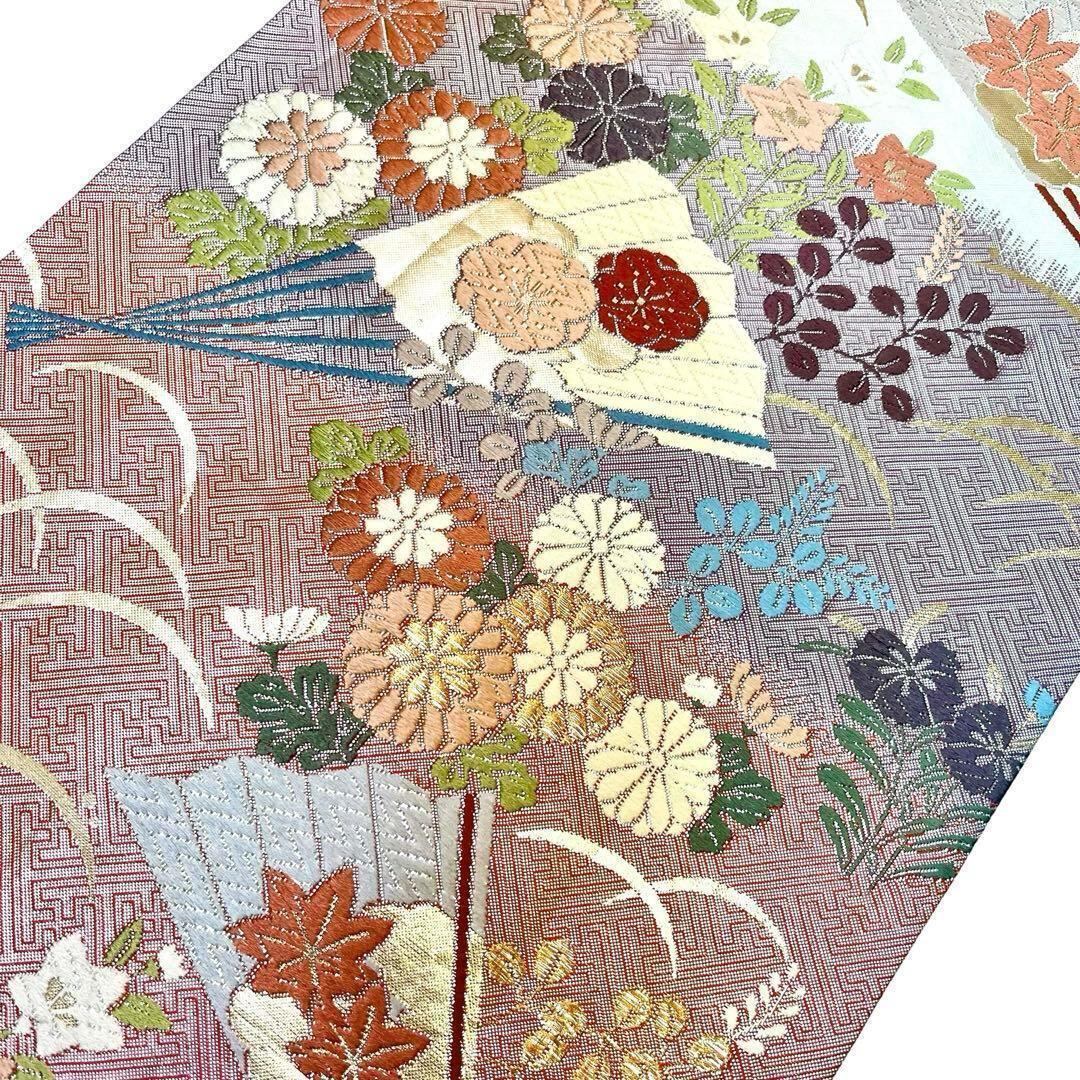 白百合色ベースのお色に横段グラデーション、扇子に四季の花模様がデザインされた素敵な柄裄のお品でございます。