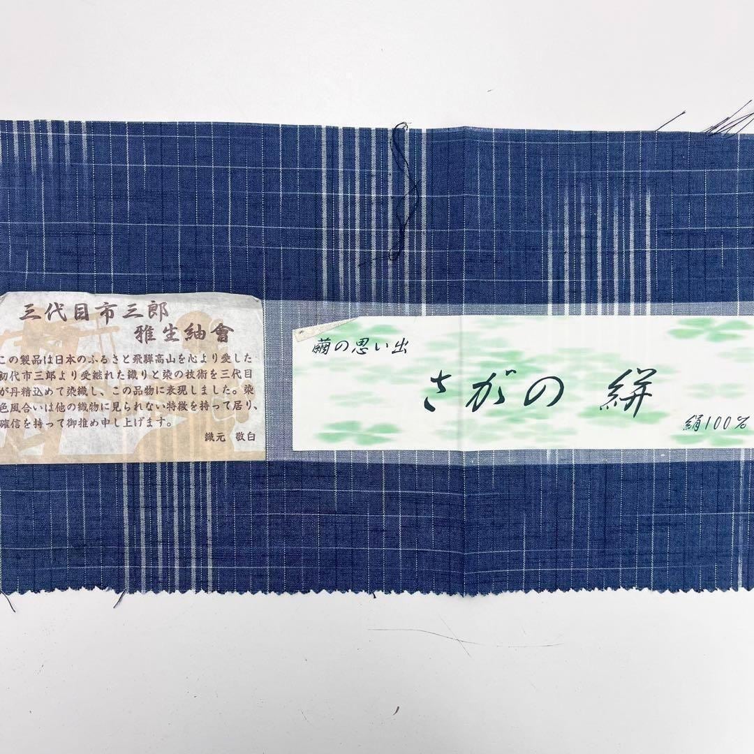 紬着物 三代目市三郎 さがの絣 雅生紬 暝色 しつけ糸 K-3835 着物 きもの kimono 和服 和装 中古 リサイクル着物 【送料無料】