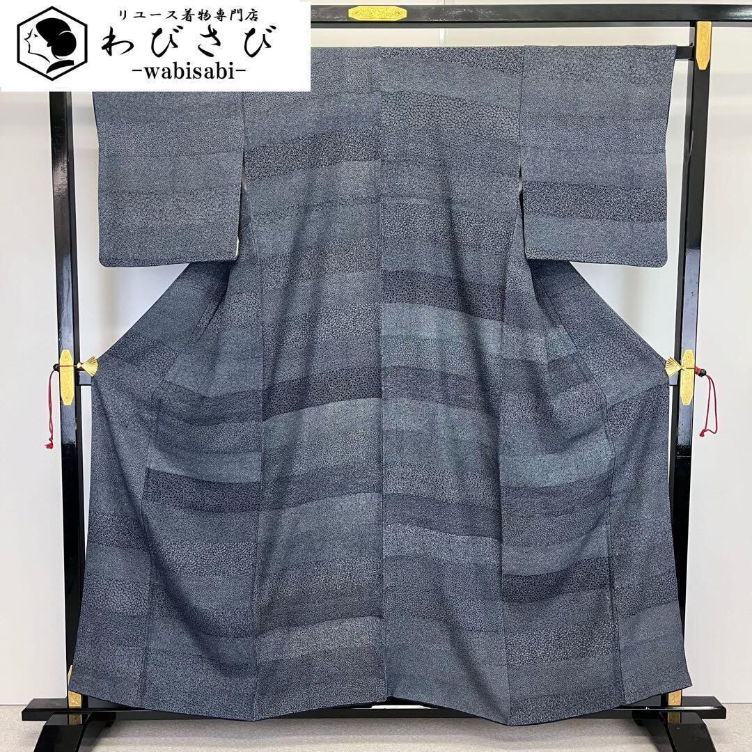 徳島県阿波天然藍染、佐藤昭人、大澤石雄の二人による本藍染の美しい藍染、江戸小紋の寄せ柄の雰囲気の良い素敵な柄裄のお品でございます。