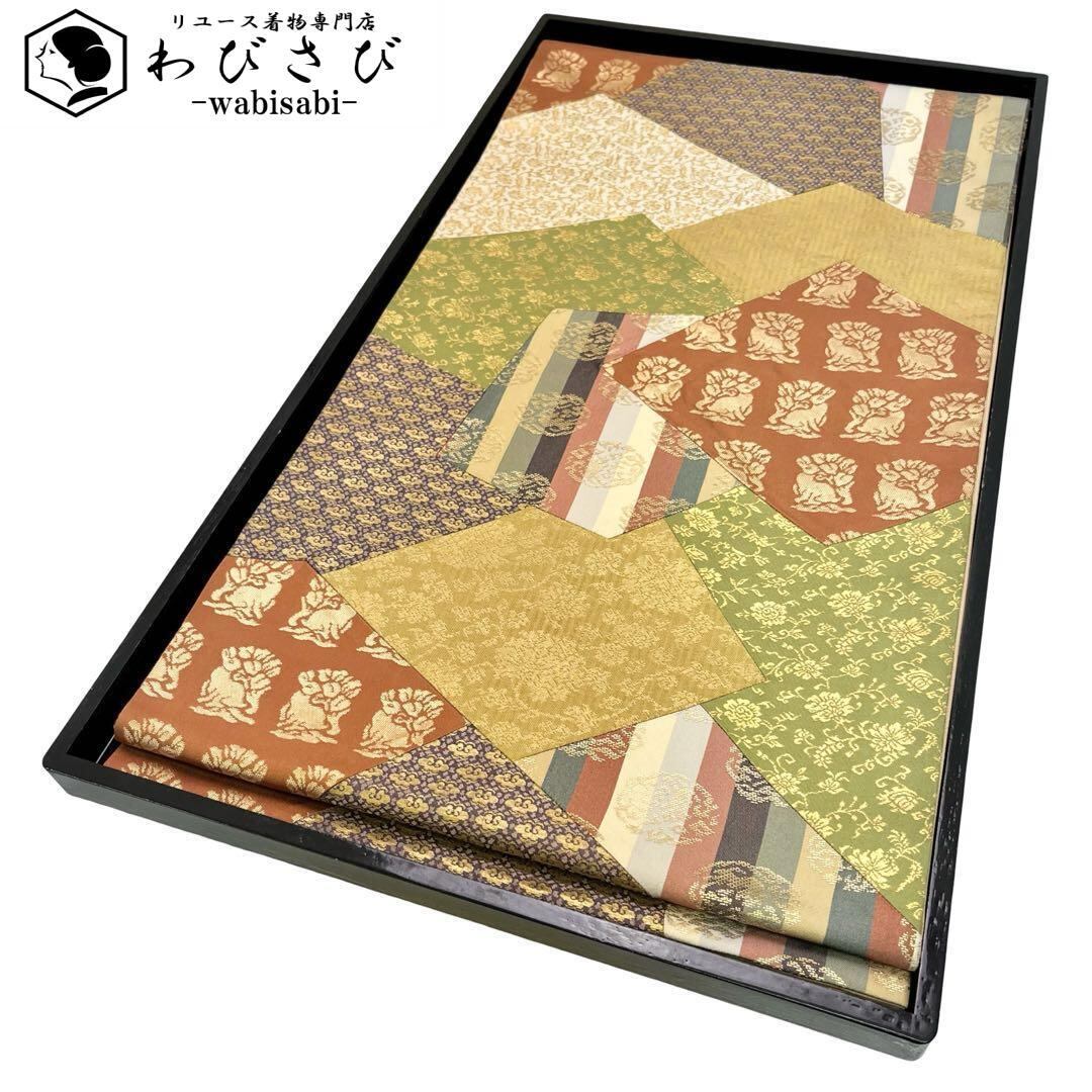 花兎や花唐草模様など多様な柄裄の切嵌でデザインされた素敵な柄裄のお品でございます。