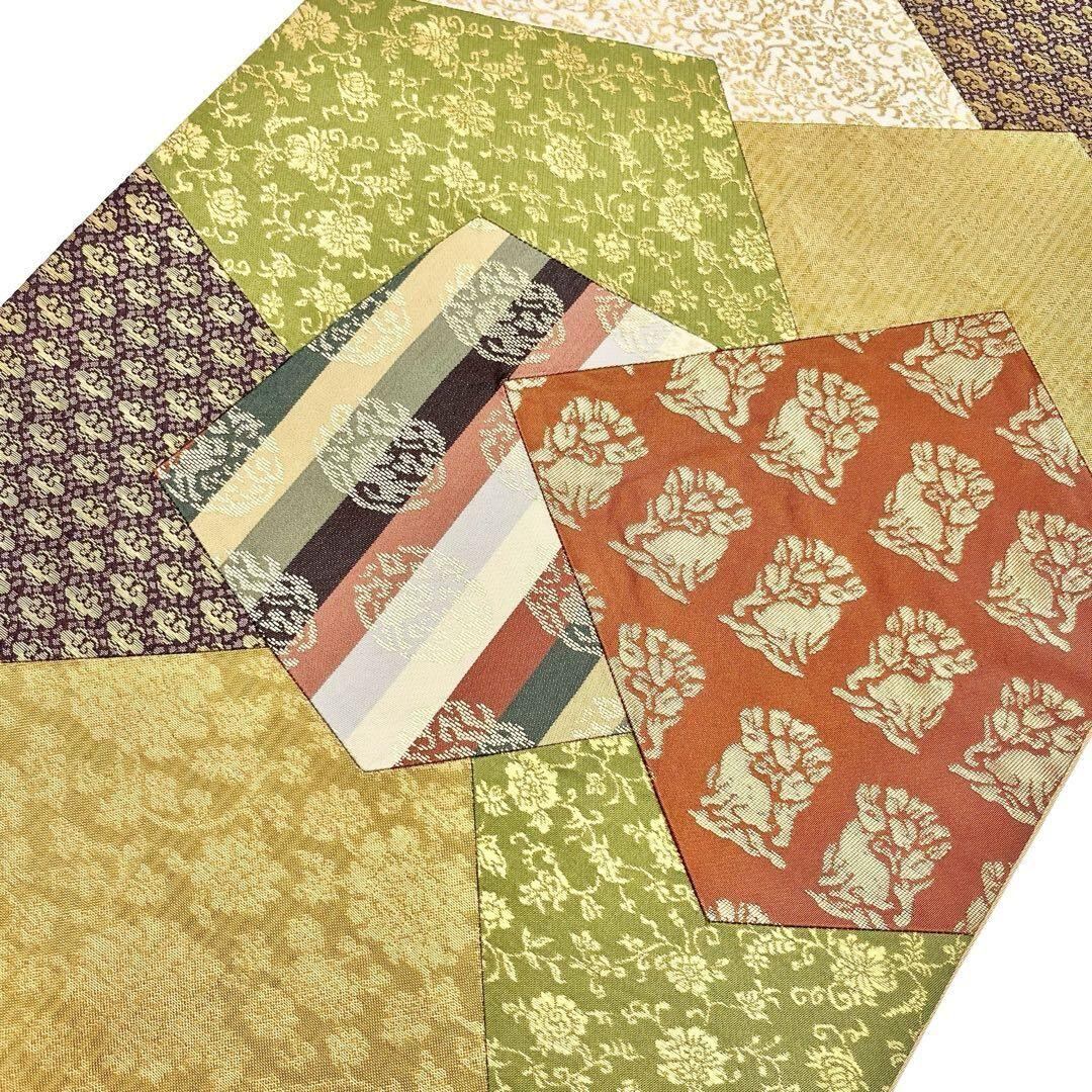 袋帯 切嵌 花兎 花柄 縦縞模様 金糸 O-3881 着物 きもの kimono 和服 和装 中古 リサイクル着物 【送料無料】
