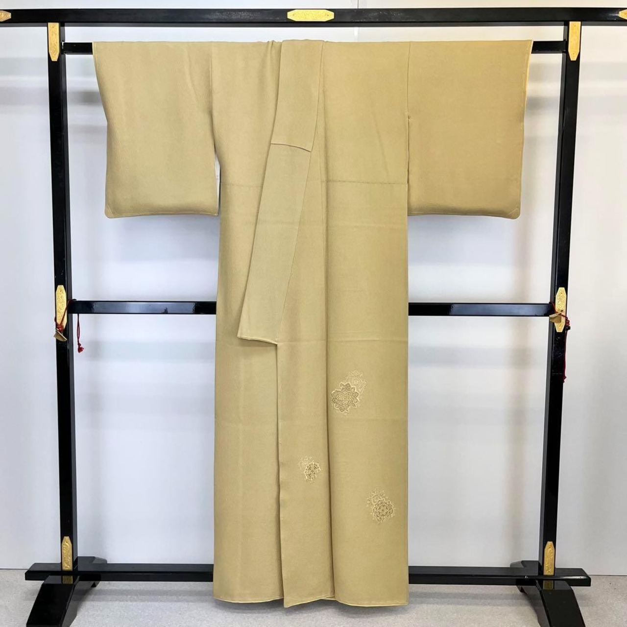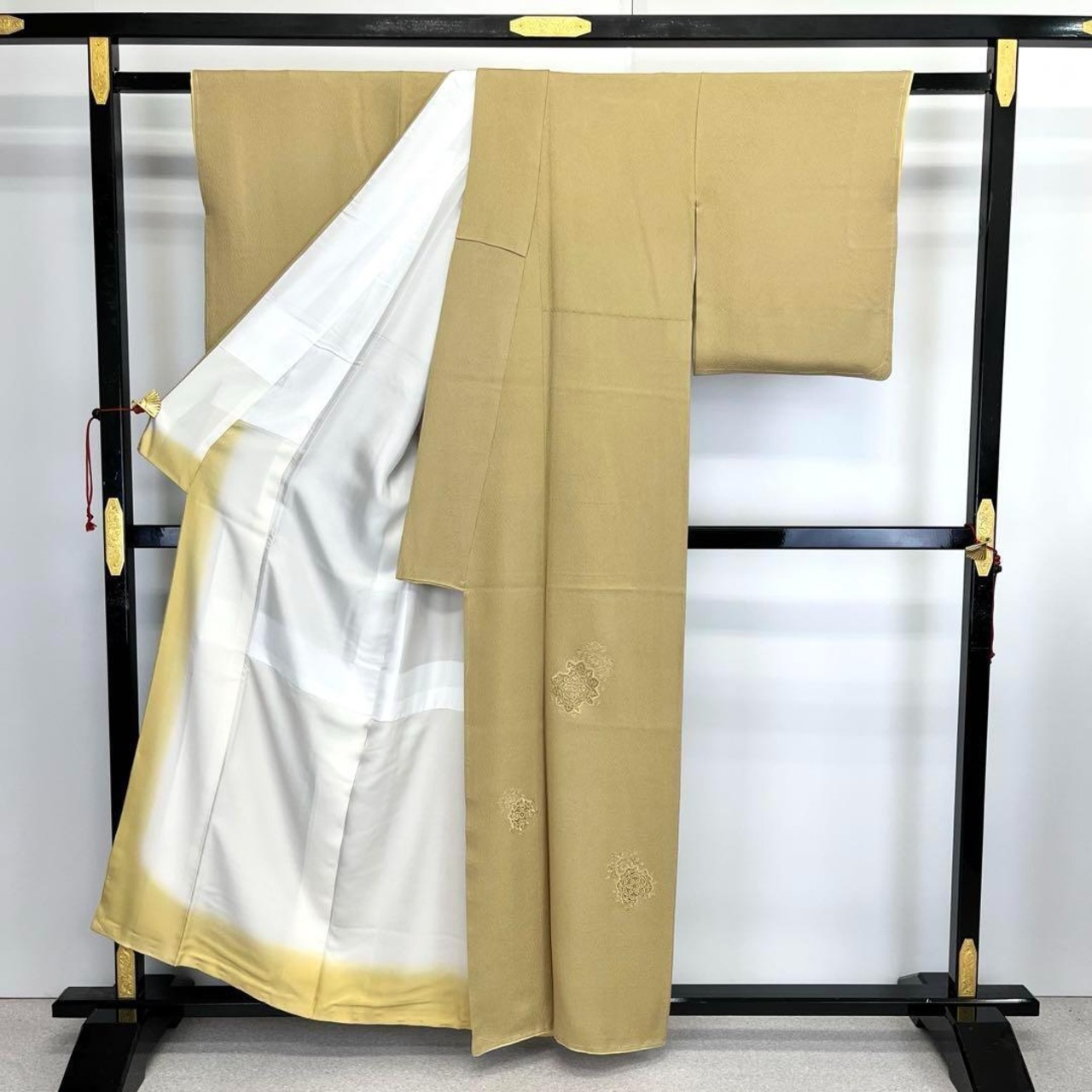 色無地 付下げ 上品な華柄刺繍 芥子色 しつけ糸 K-3845