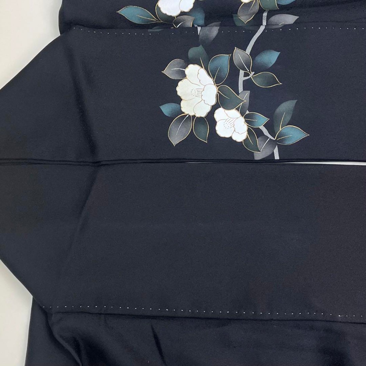 訪問着 椿の花 観世水模様 金彩 黒色 ガード加工 K-3848