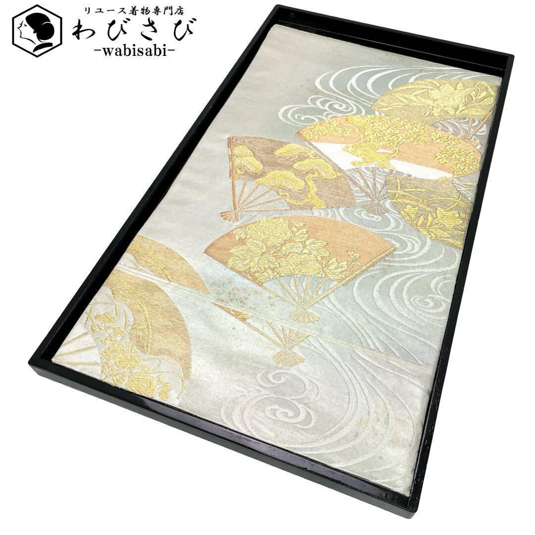 琳派流水扇文と題された白緑色の品のあるお色に金銀糸が使われた扇子に流水模様がデザインされた素敵な柄裄のお品でございます。